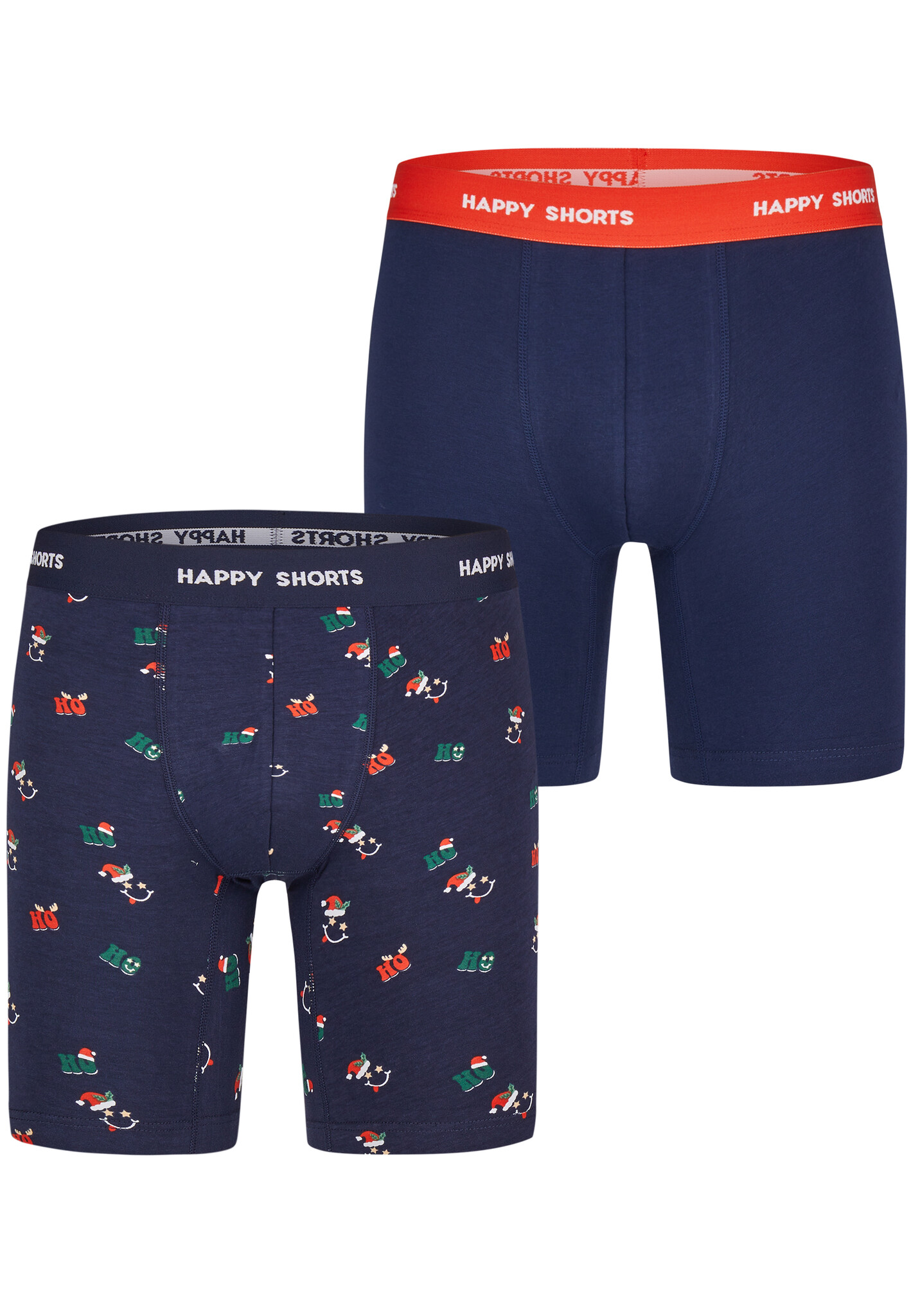 Happy Shorts Kerst Boxershorts Heren Met Lange Pijpen Boxer Briefs 2-Pack Blauw