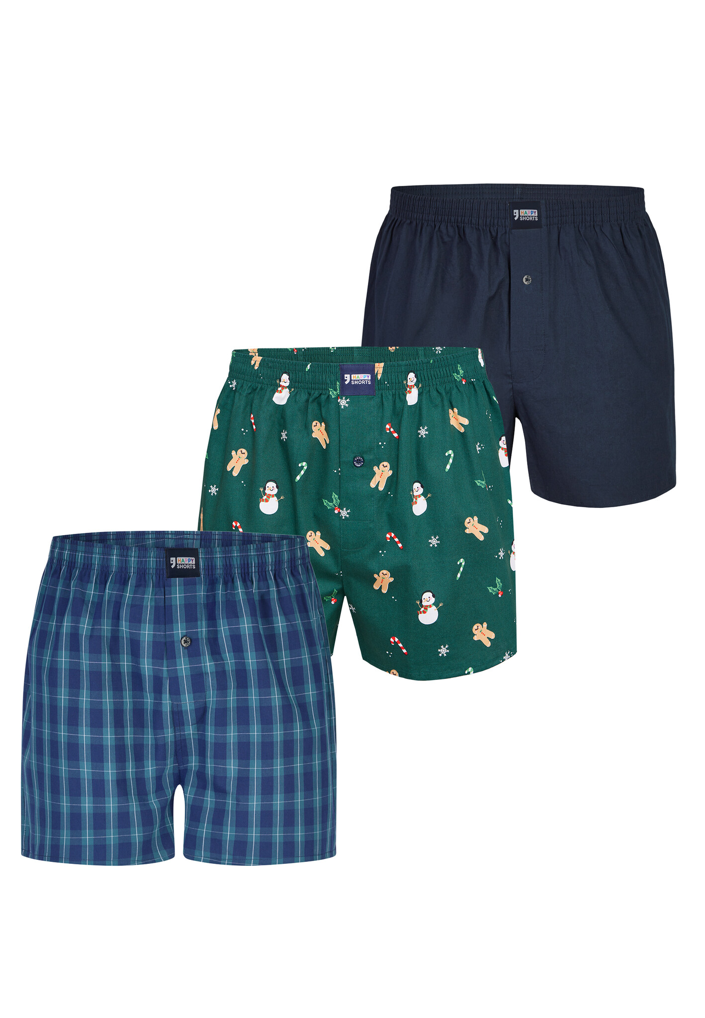 Happy Shorts Wijde Boxershorts Heren Kerst 3-Pack Geruit/Print/Effen