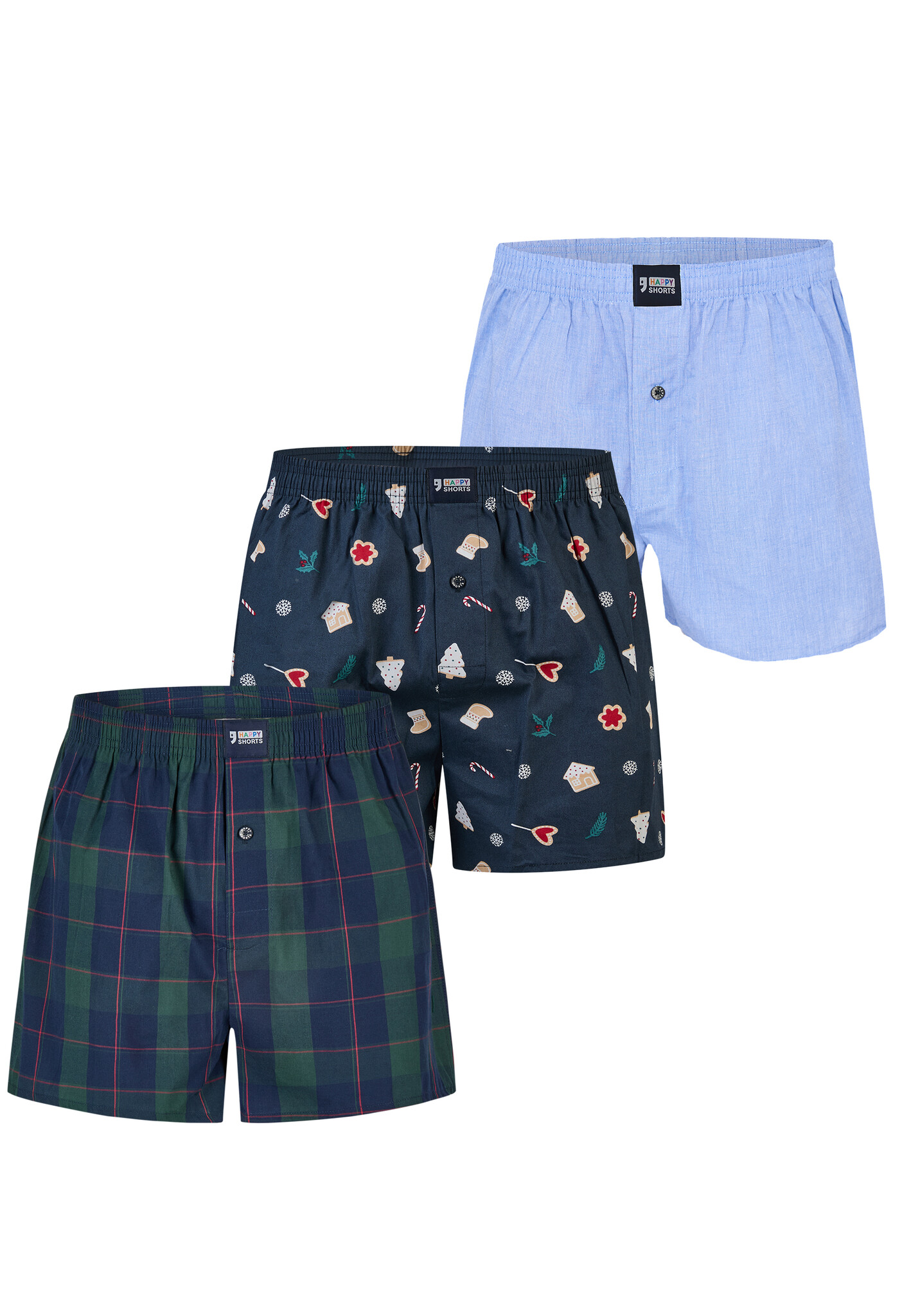 Happy Shorts Wijde Boxershorts Heren Kerst 3-Pack Geruit/Print/Effen