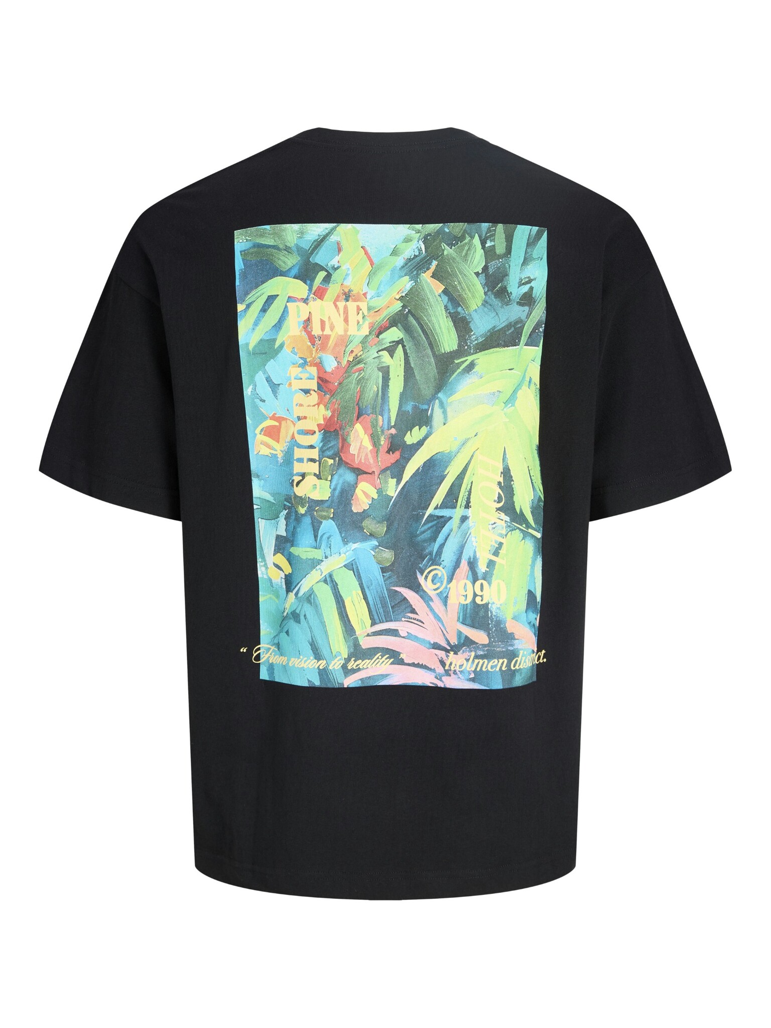 Jack & Jones Heren Backprint T-Shirt JORMONTAUK Gebloemd Zwart/Multicolor