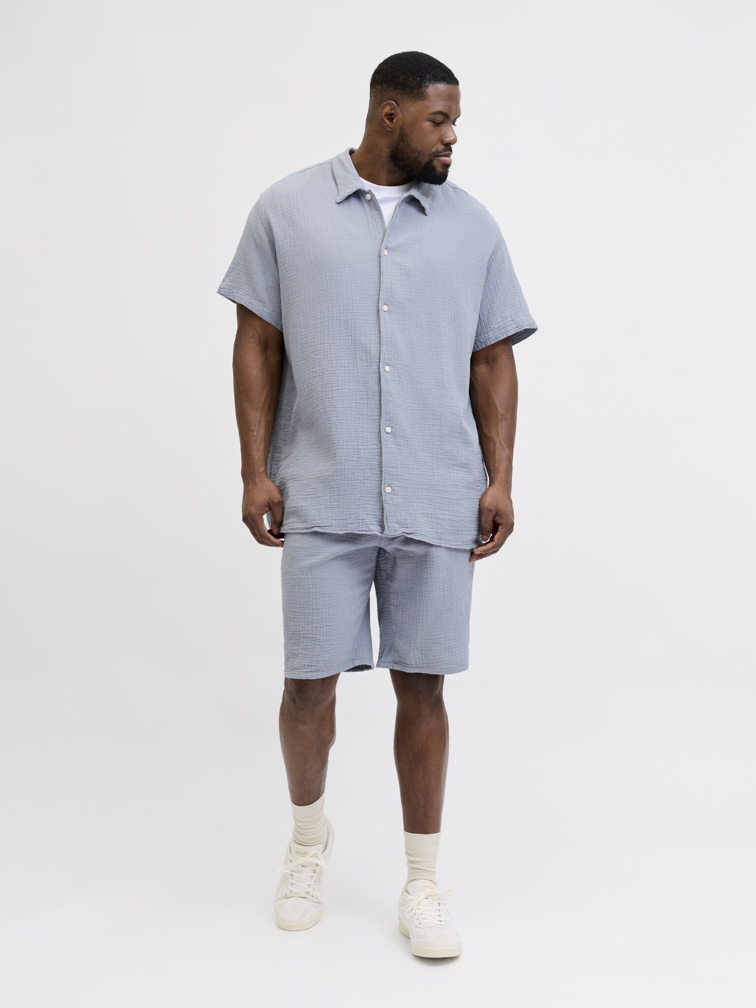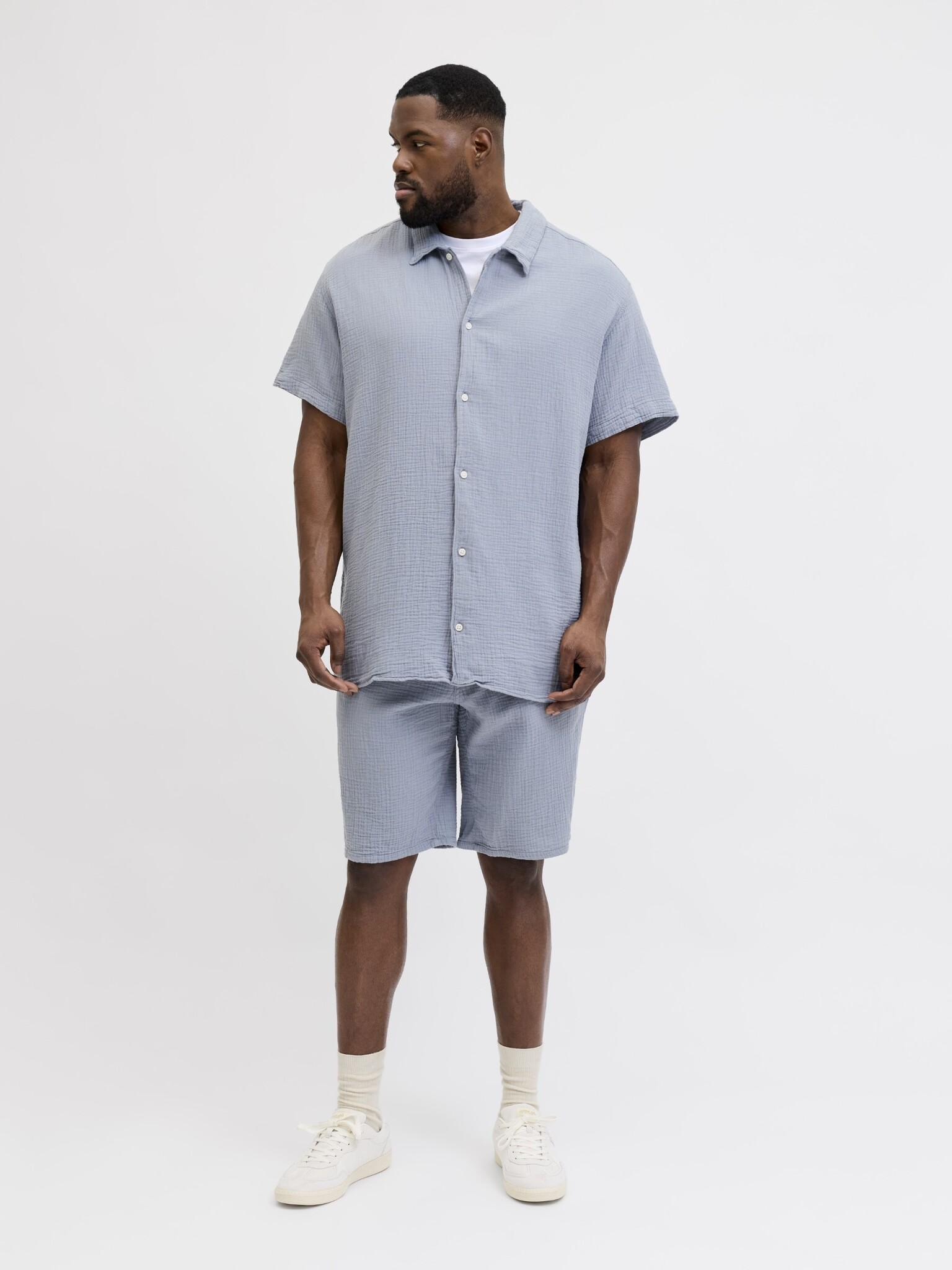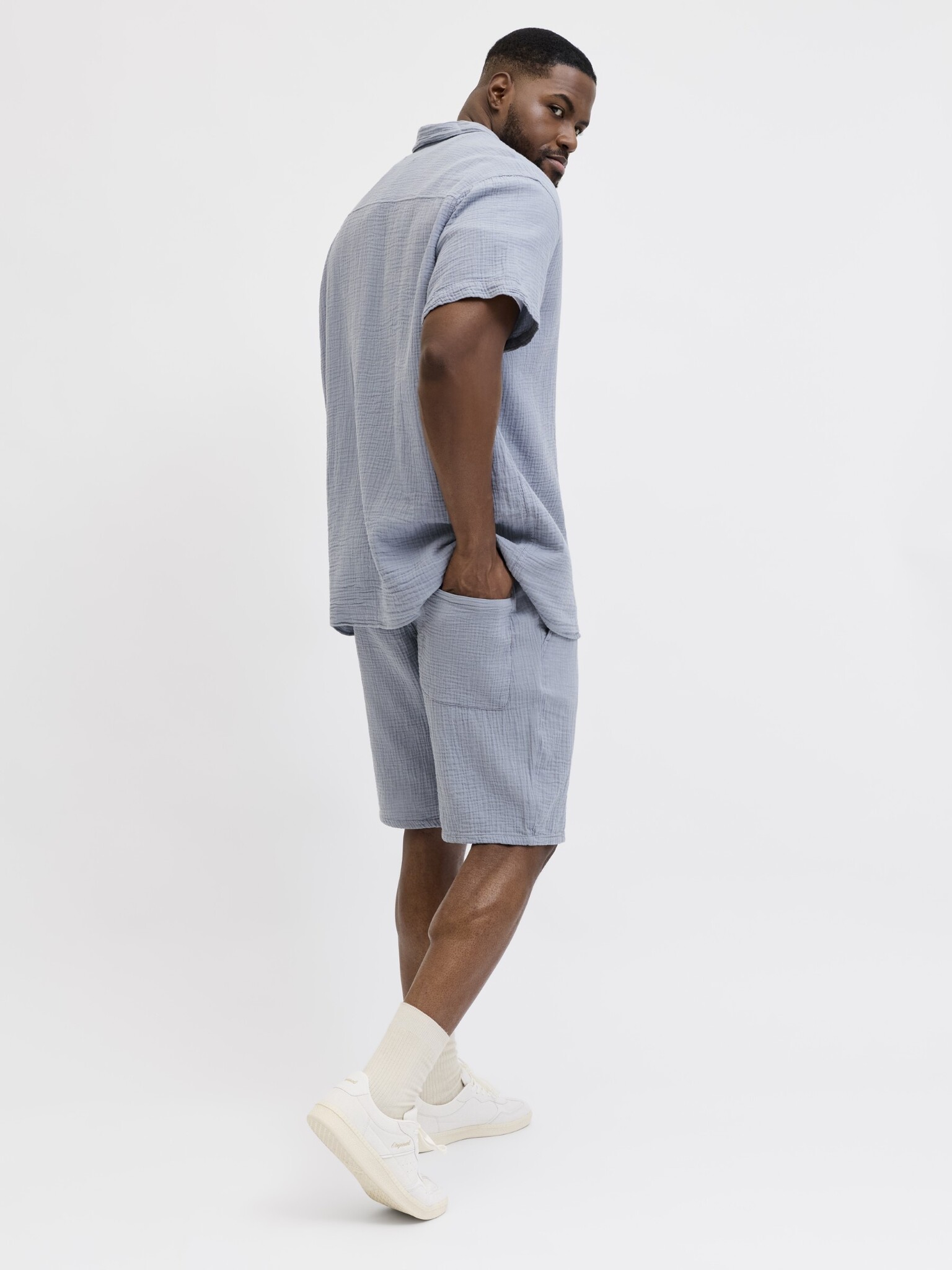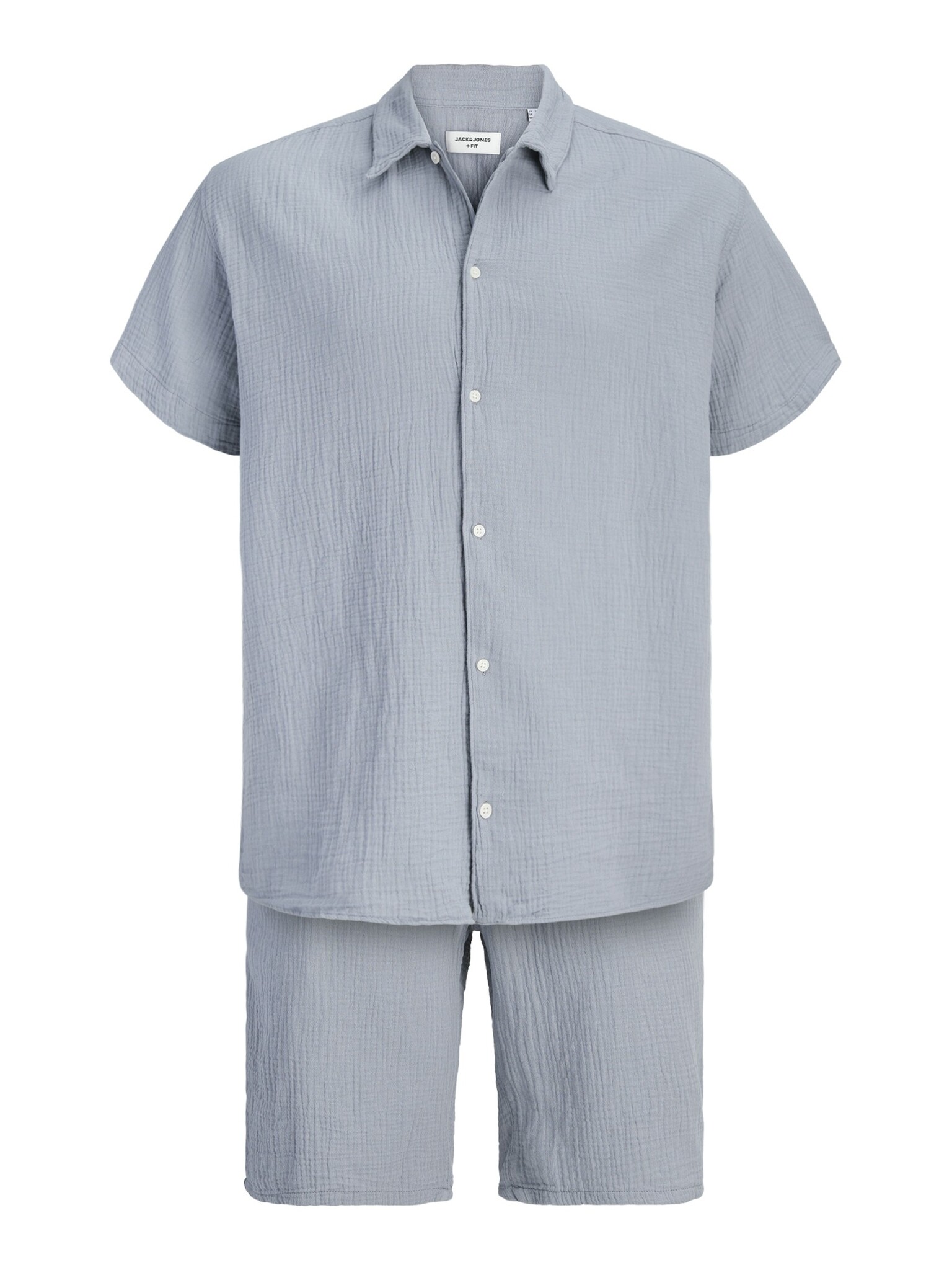 De Jack & Jones JORNANTUCKET set voor heren is een luchtige en comfortabele keuze voor warme dagen. Deze lichtblauwe blouse en shorts co-ord set heeft een rustige, effen uitstraling en is makkelijk te dragen tijdens vrije dagen, vakanties of ontspannen momenten thuis en buitenshuis. Dankzij de regular fit en de ademende katoen voelt deze 2-delige set prettig aan vanaf het eerste moment.