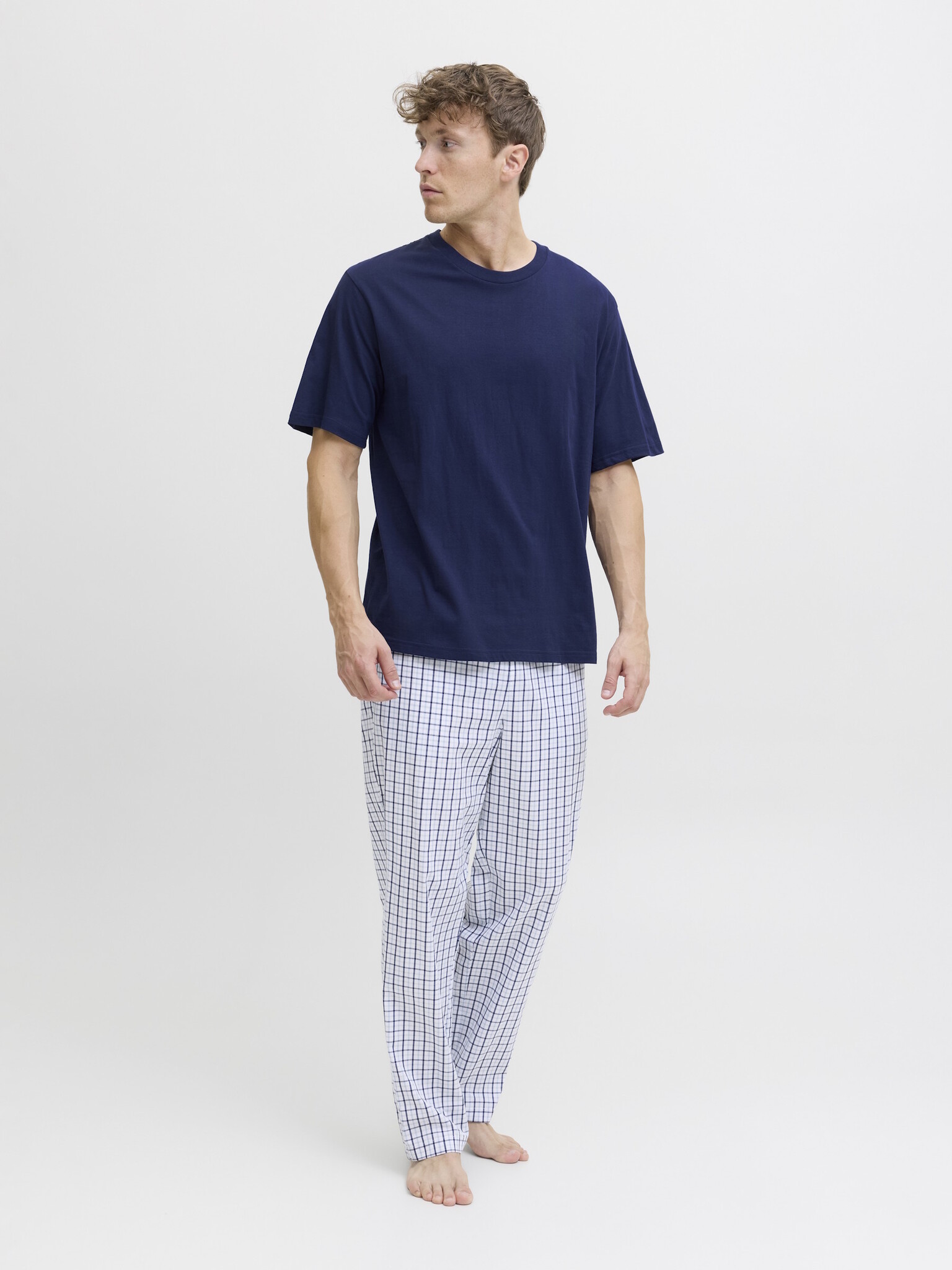Jack & Jones Heren Pyjama Set Lange Pyjamabroek JACFLORENCE Blauw/Wit Geblokt