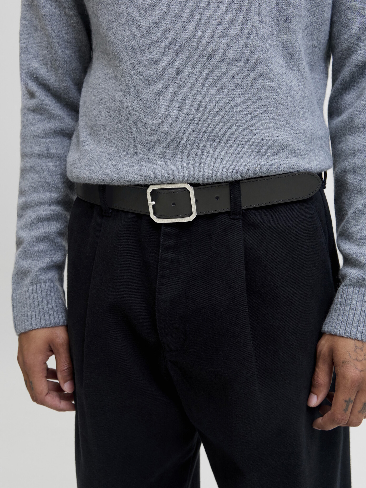 De JACSQUARE riem van Jack & Jones is een klassieke leren riem in zwart die moeiteloos past bij zowel casual als nette looks. Gemaakt van hoogwaardig runderleer voor een duurzame en stijlvolle afwerking.