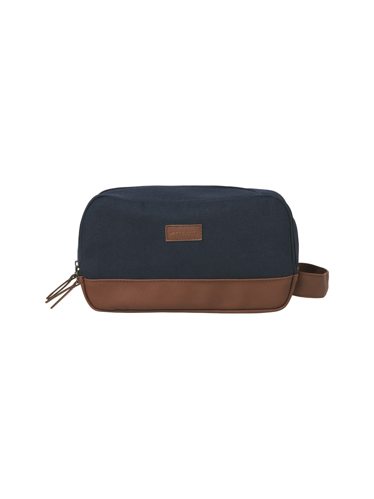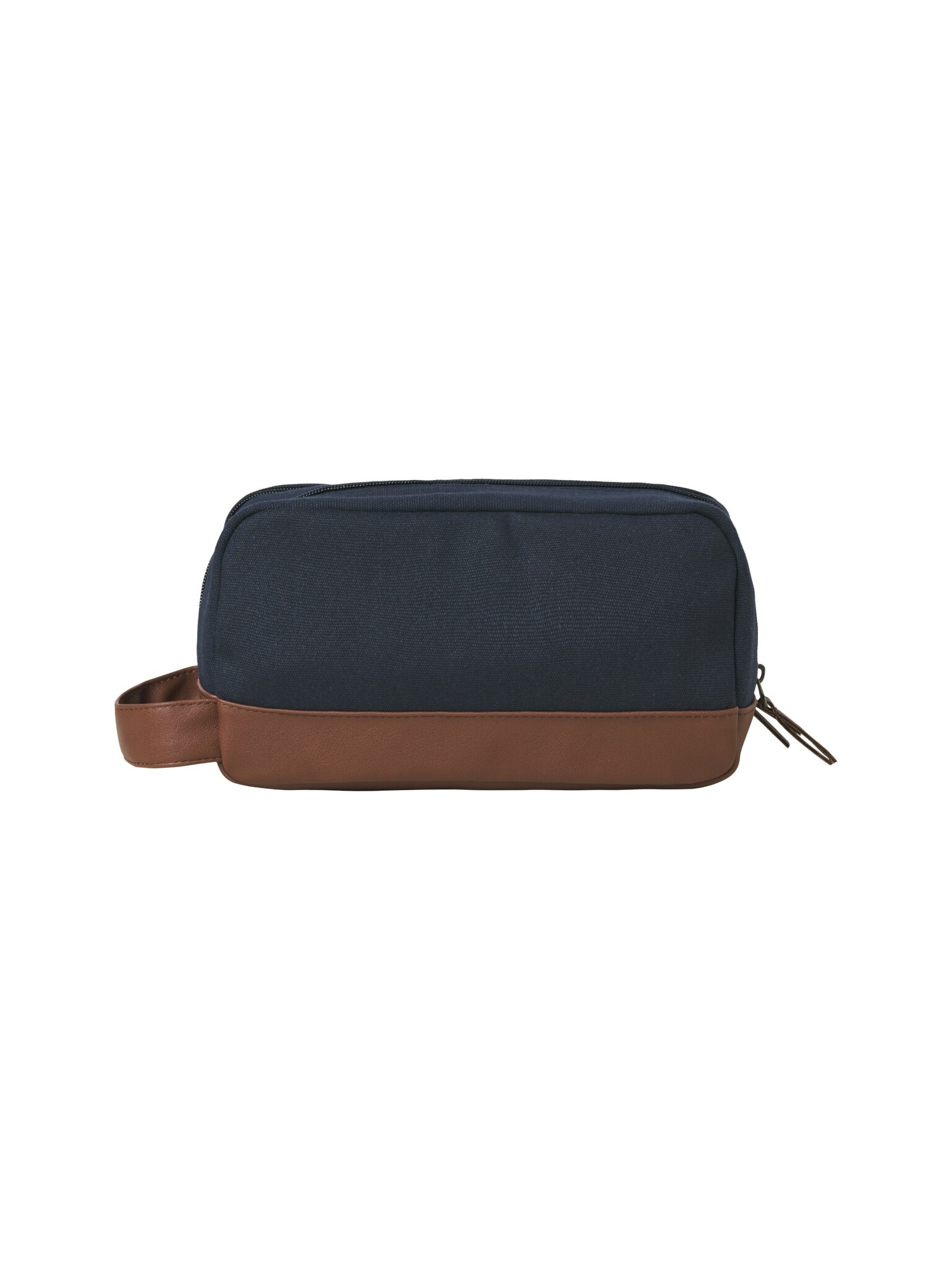 De Jack & Jones heren toilettas JACPASCAL in donkerblauw met bruine accenten is een robuuste en stijlvolle keuze voor het georganiseerd meenemen van je verzorgingsproducten. Dankzij het duurzame canvas van gerecycled materiaal is deze toilettas perfect voor dagelijks gebruik of op reis.