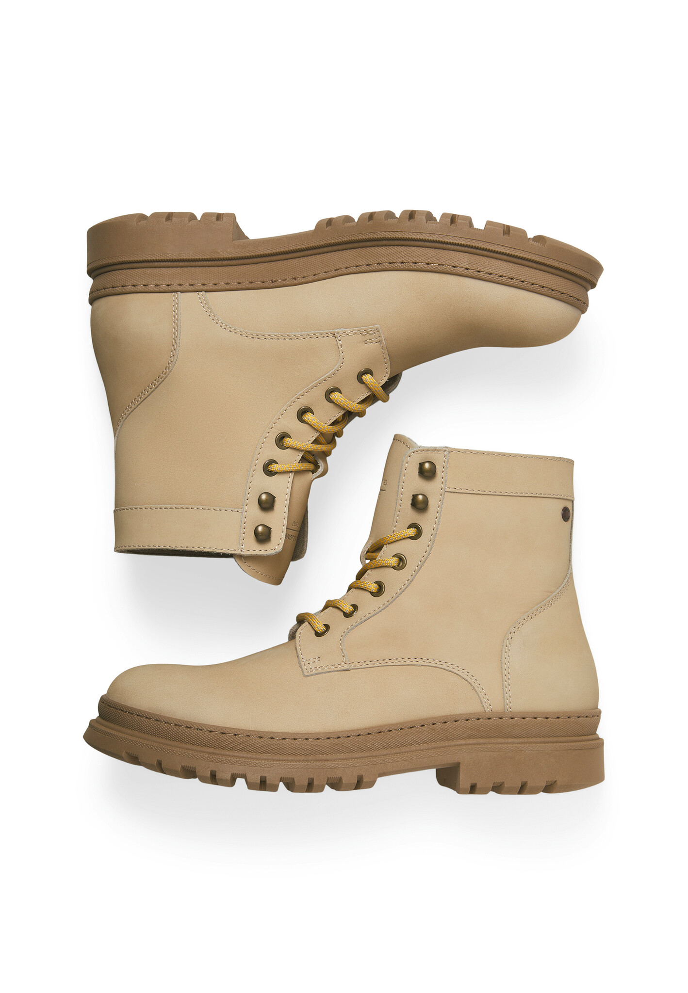De heren veterboots van Jack & Jones combineren een stoere uitstraling met tijdloos comfort. Het bovenwerk van beige nubuck leer geeft de schoen een natuurlijke en stijlvolle look, terwijl de hoge schacht extra steun en bescherming biedt. Met de klassieke vetersluiting zijn de boots eenvoudig aan te passen voor een stevige pasvorm die de hele dag prettig blijft.