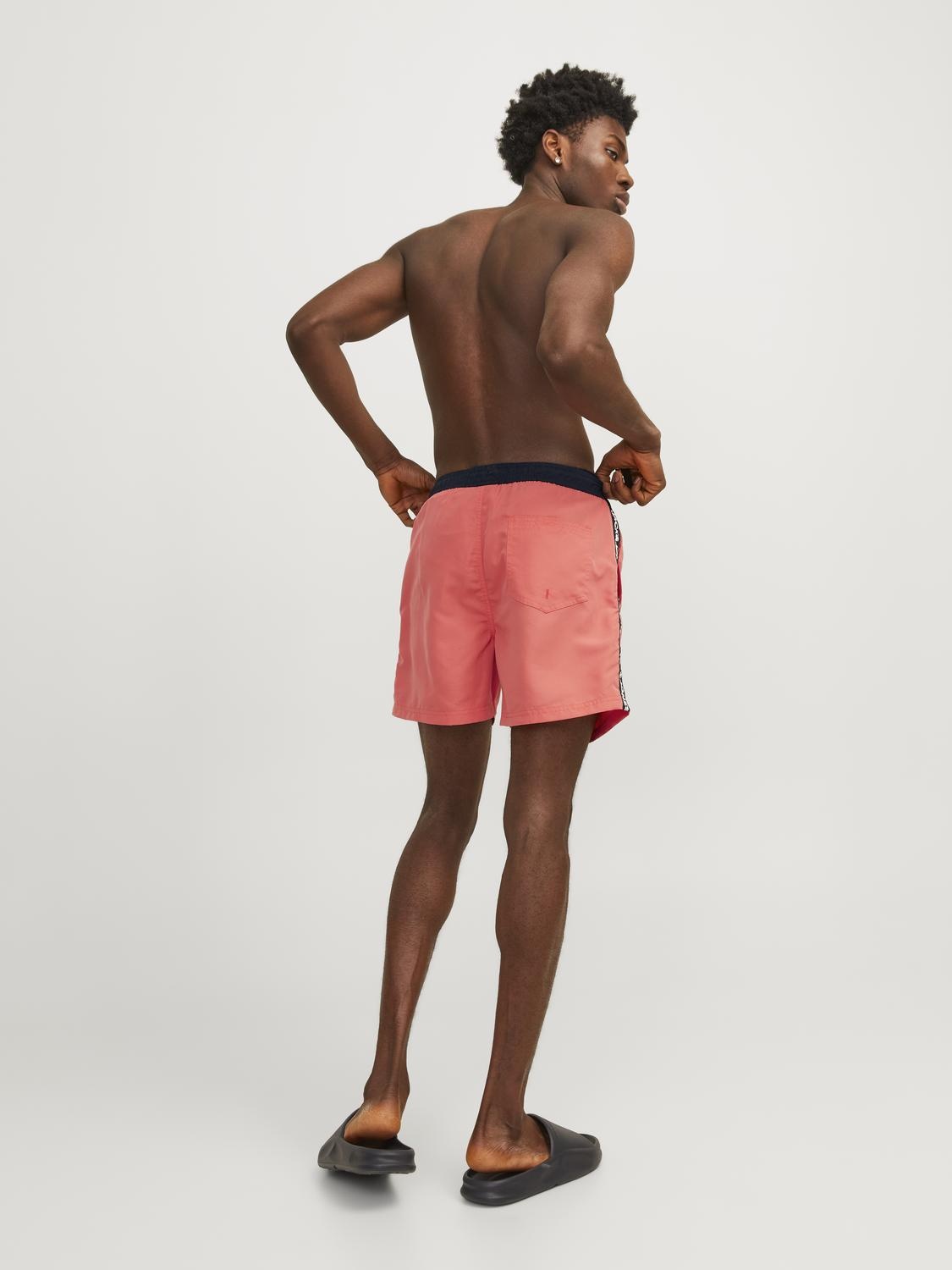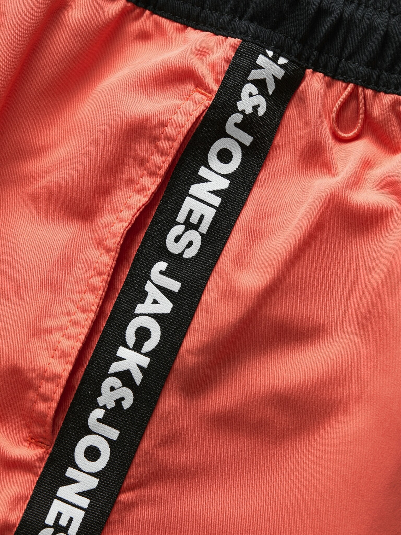 Jack & Jones Heren Zwemshorts JPSTFIJI Black Tape Effen Hot Coral