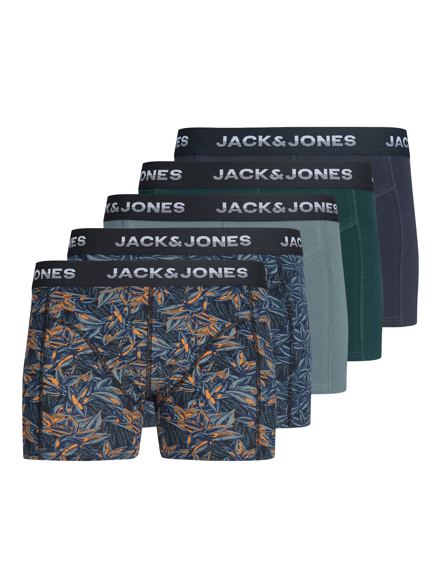 Jack & Jones Junior Jongens Boxershorts Trunks JACMAXWELL 5-Pack Blauw Gebloemde Print