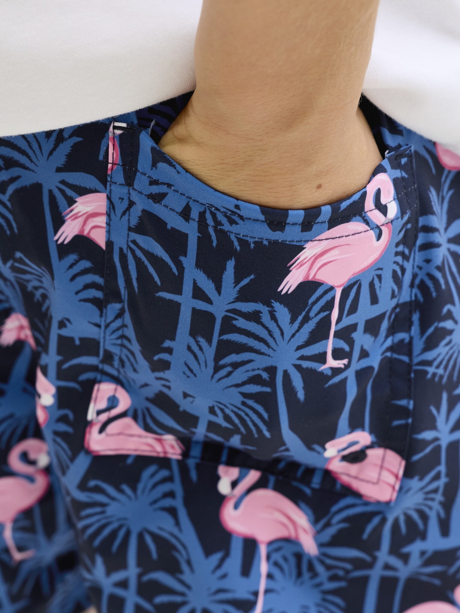 - Bijzondere kenmerken: uitgevoerd in donkerblauw met een flamingo- en palmprint voor een speelse en zomerse uitstraling.