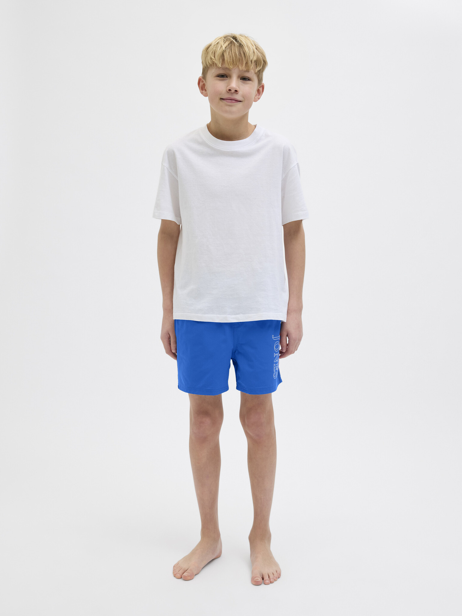 Jack & Jones Junior Zwemshort JPSTMAUI Double Logo Effen Blauw