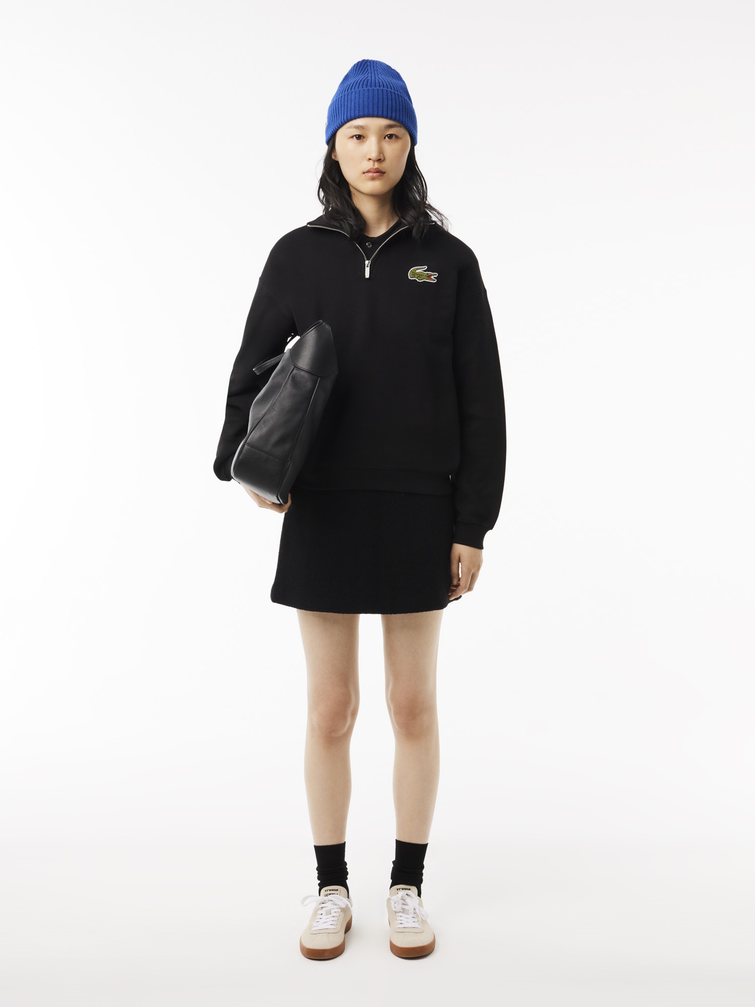 - Design: Klassiek 2x2 geribbelde structuur met omgeslagen rand en subtiele, groene geborduurde Lacoste-krokodil aan de zijkant.
