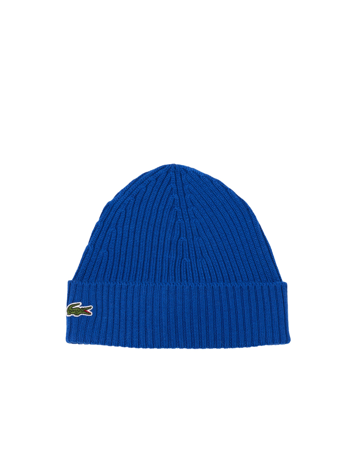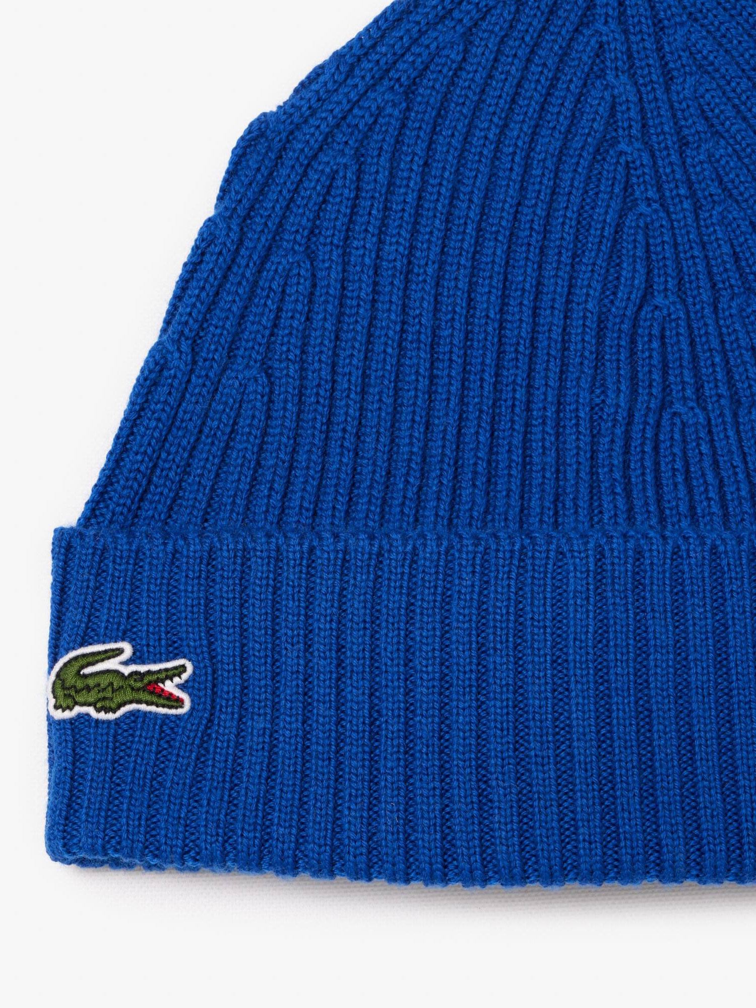 Lacoste Beanie Geribbelde Dames Heren Muts Wol Blauw