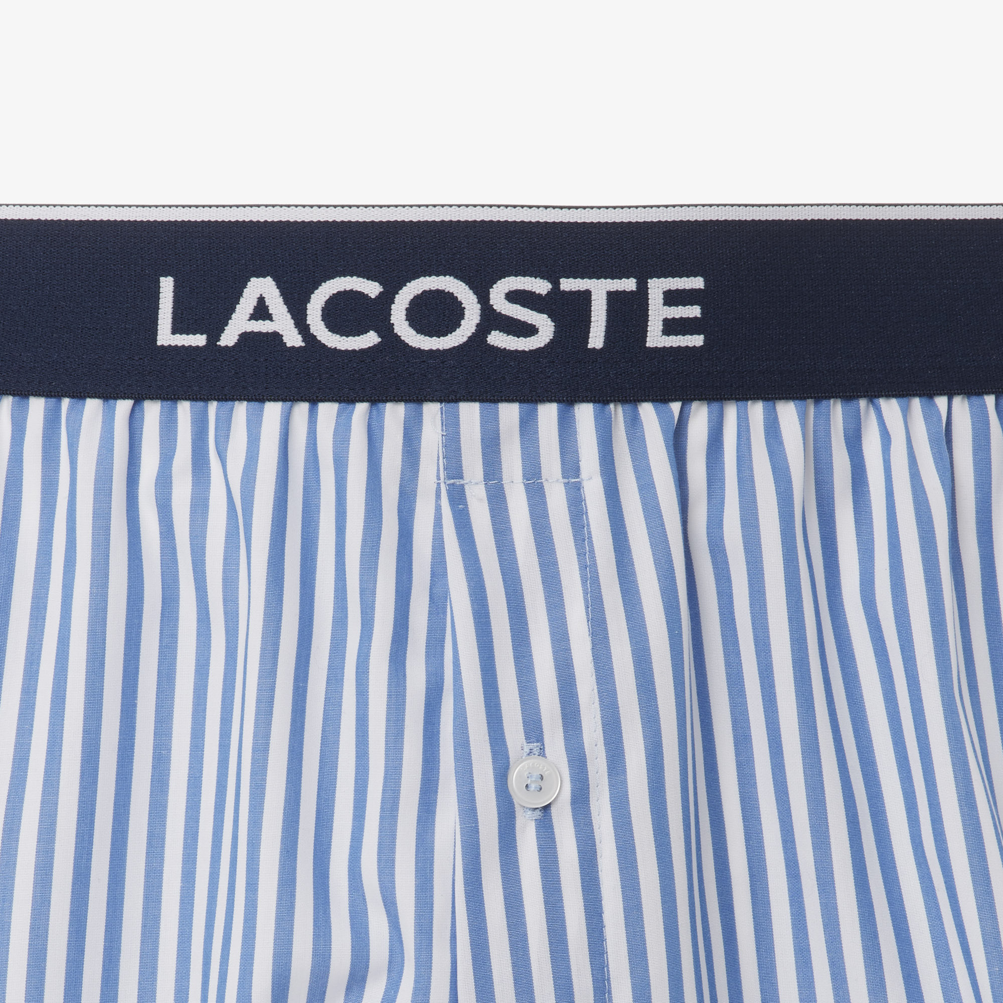 De wijde boxershorts van Lacoste bieden een combinatie van tijdloze stijl en dagelijks draagcomfort. Deze 3-pack bestaat uit één gestreepte en twee effen trunks in blauw en navy, gemaakt van 100% katoenen popeline. De soepele stof voelt licht aan en zorgt voor optimale bewegingsvrijheid, de hele dag door.