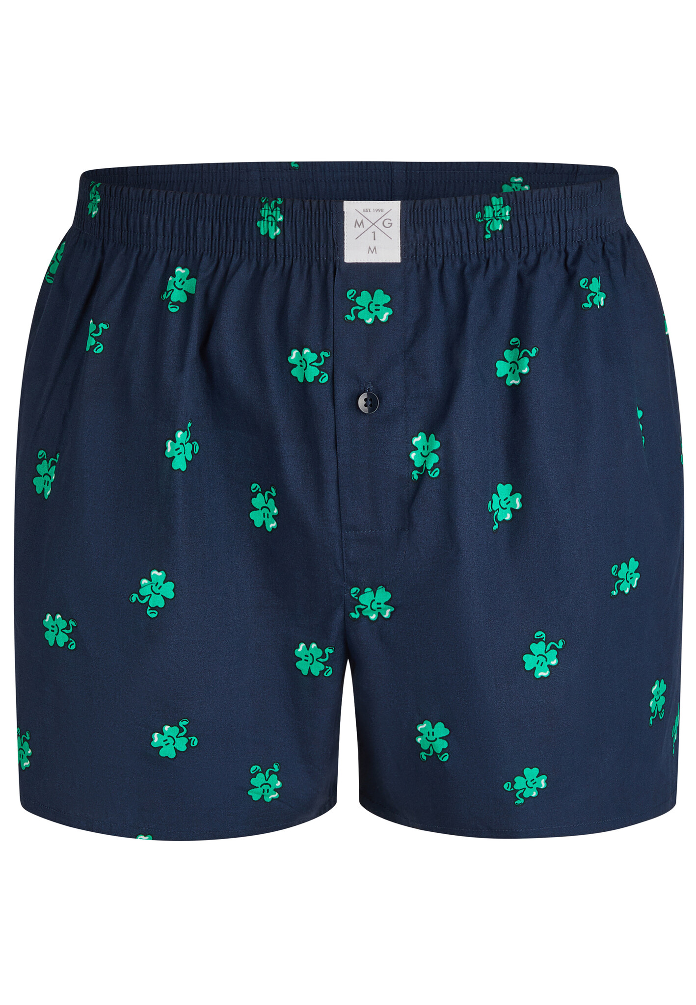 De wijde boxershorts van MG-1 combineren ultiem draagcomfort met speelse prints. Gemaakt van 100% geweven katoen, voelen ze zacht en luchtig aan op de huid. De elastische tailleband met ruches zorgt voor een prettige pasvorm zonder knellen, terwijl de knoopsluiting aan de voorkant een klassieke touch toevoegt.