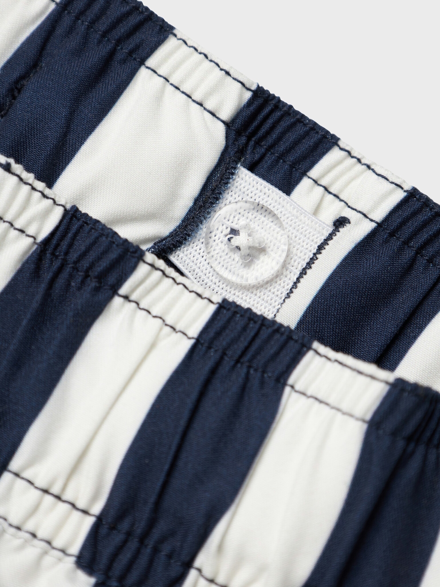 De zwemshorts van Name It geven een frisse, maritieme twist aan de zomeroutfit van je kind. Met een comfortabele pasvorm en een klassiek donkerblauw-wit streeppatroon is deze zwembroek ideaal voor zonnige stranddagen of spetterplezier in het zwembad.