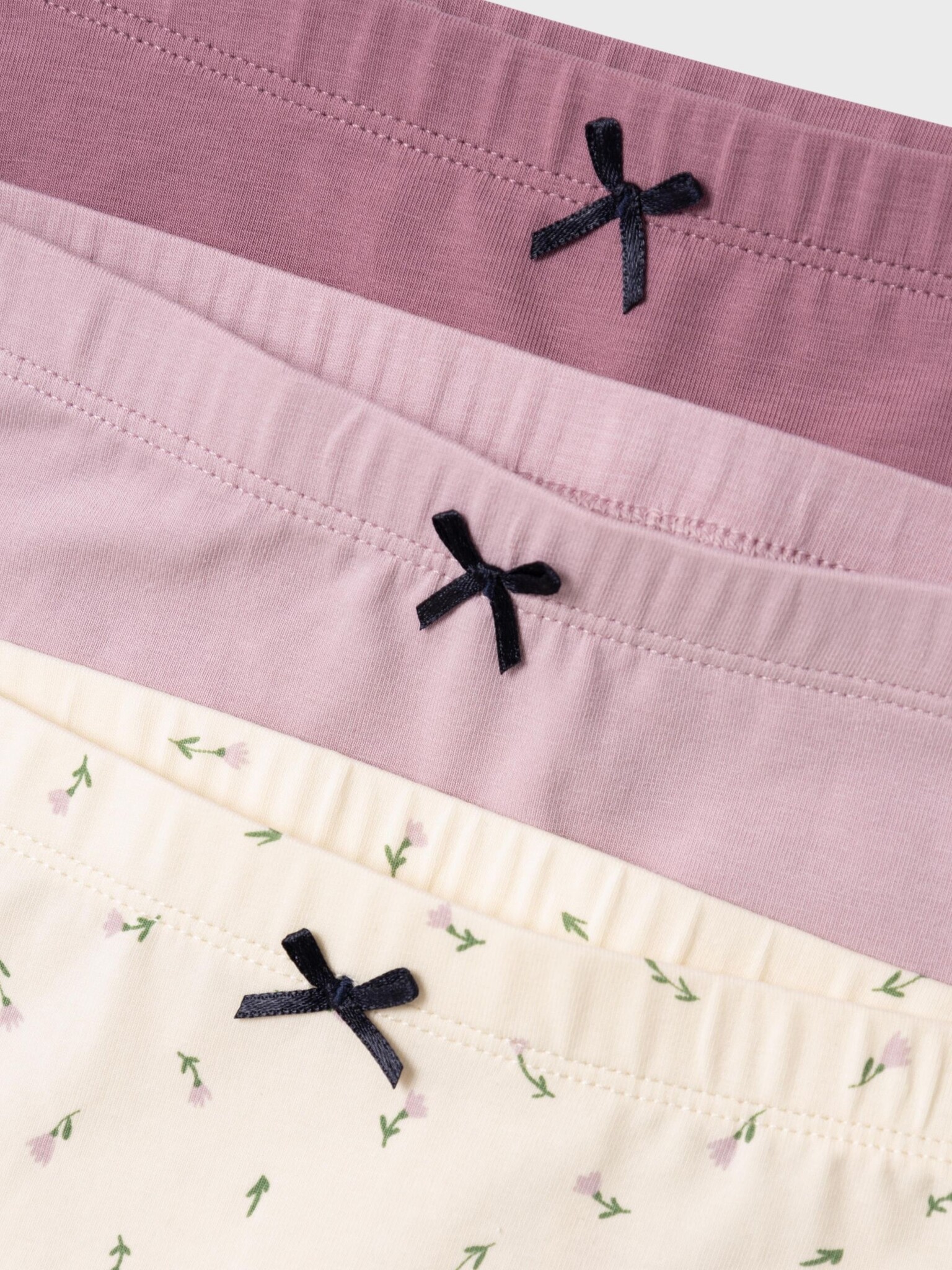 Dit 3-pack meisjes hipsters bevat 2 effen roze hipsters, en één off-white met rozenprint. Bij de elastische waistband zit een leuk strikje verwerkt. De hipsters zijn gemaakt van 95% jersey katoen en 5% elastaan, jersey is een lichte, rekbare stof met een zacht oppervlak aan de buiten en binnenkant voor een comfortabel gevoel en bewegingsvrijheid.