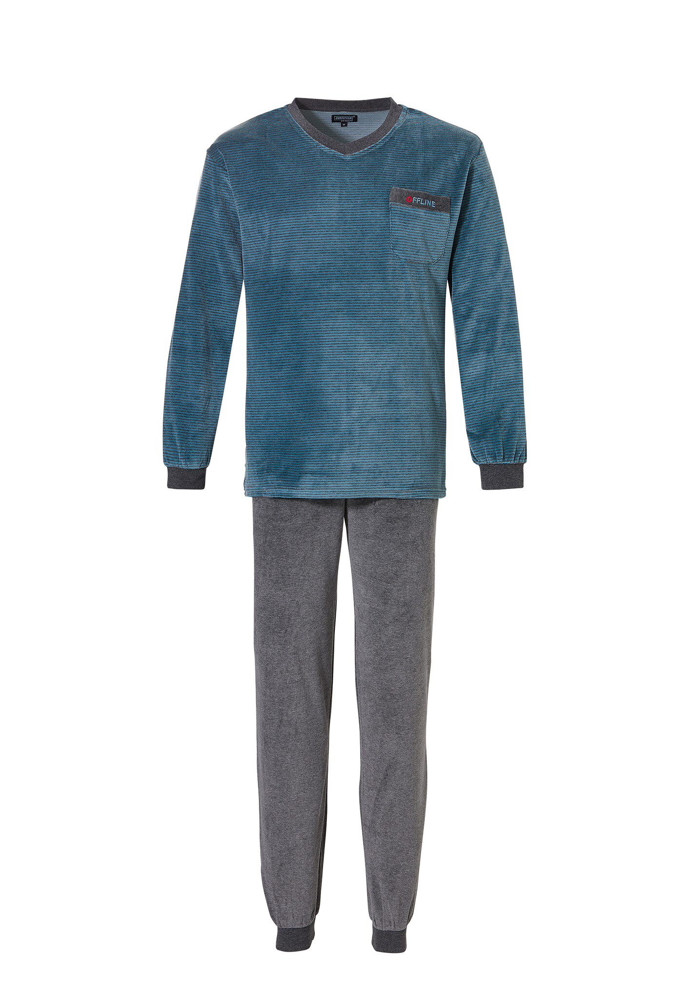 Outfitter Heren Pyjama Set Velours Grijs/Blauw