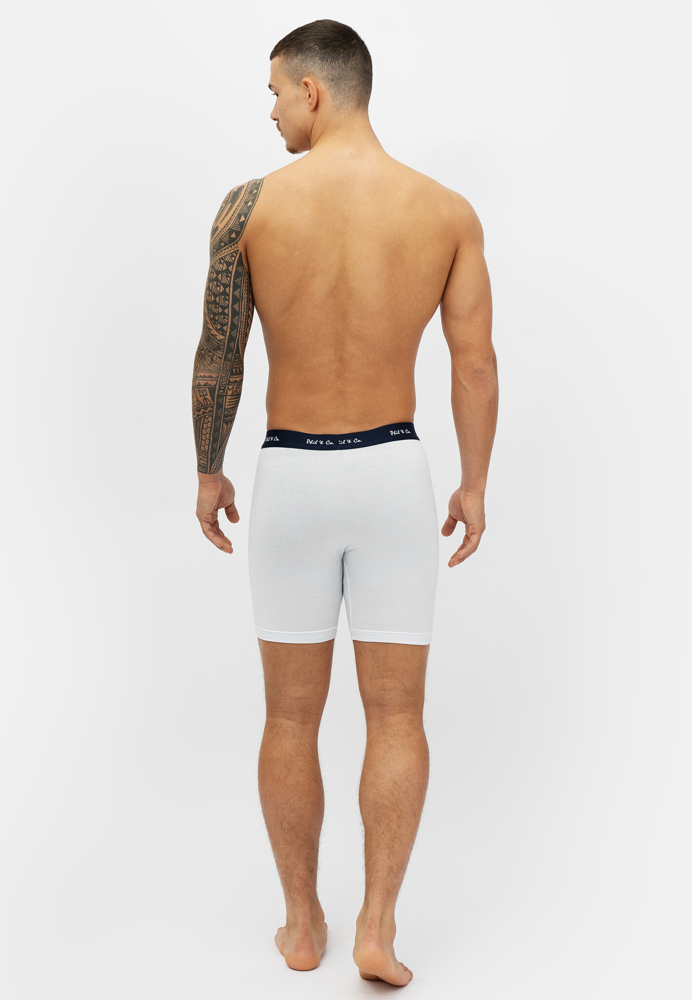 Phil & Co witte, zwarte en beige heren boxershorts met lange pijpjes. Deze set bevat 3 effen boxer briefs met elastische waistband. De extra lange pijpjes sluiten goed aan op de benen en geven extra draagcomfort.