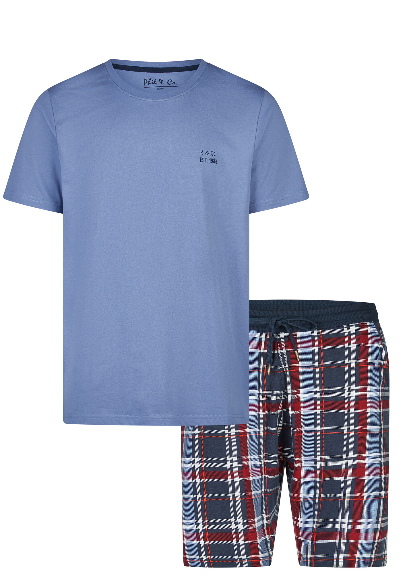 Phil & Co Essential Shortama Heren Korte Pyjama Set Blauw/Geruit