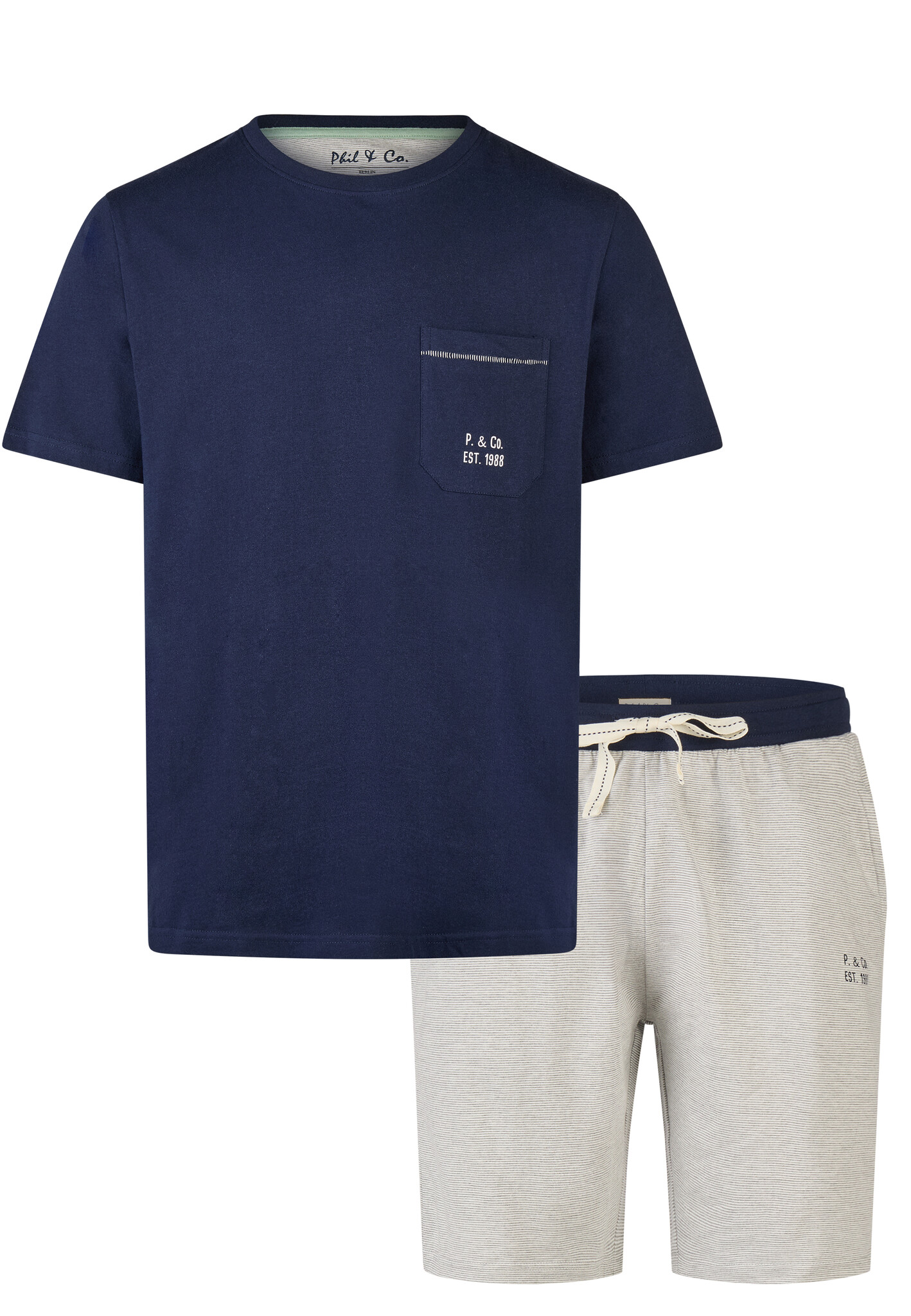 Phil & Co Heren Korte Pyjama Set Shortama Donkerblauw/Grijs Gestreept