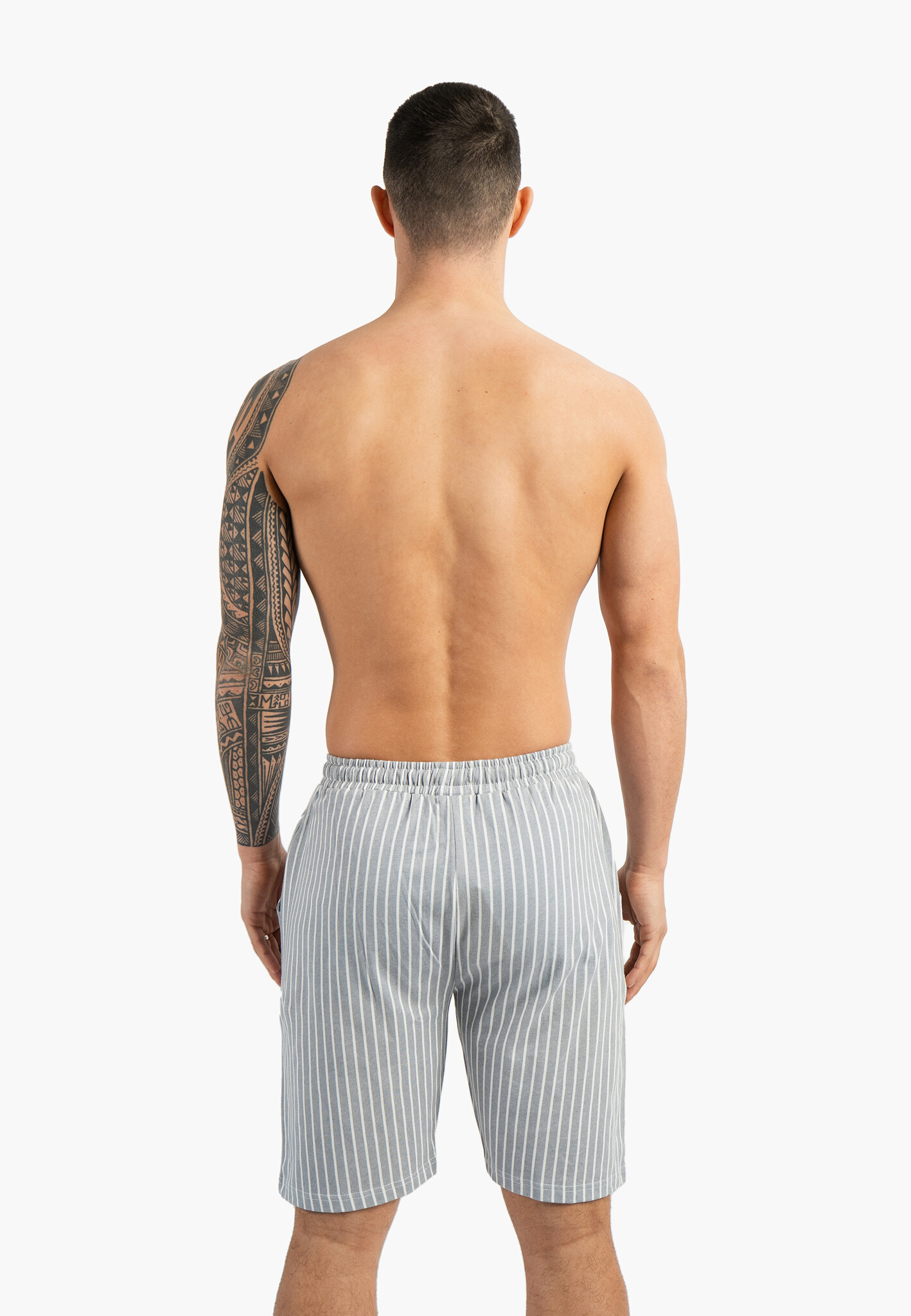 Phil & Co Heren Korte Pyjamabroeken 2-Pack Grijs Gestreept/Donkerblauw
