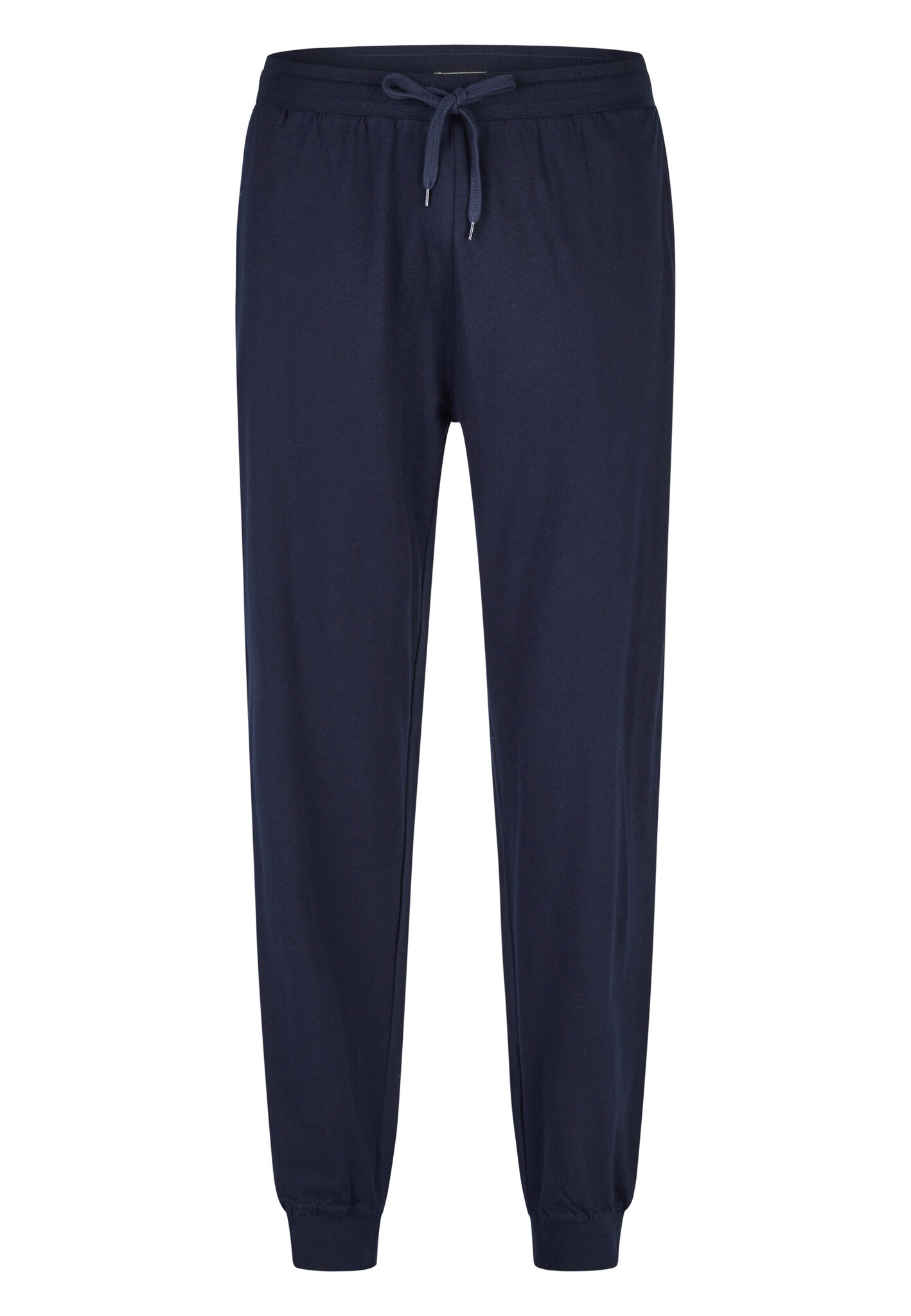 Deze herenpyjama combineert draagcomfort met praktische details. De lange broek is afgewerkt met manchetten en heeft handige steekzakken en een koordsluiting voor extra gemak.