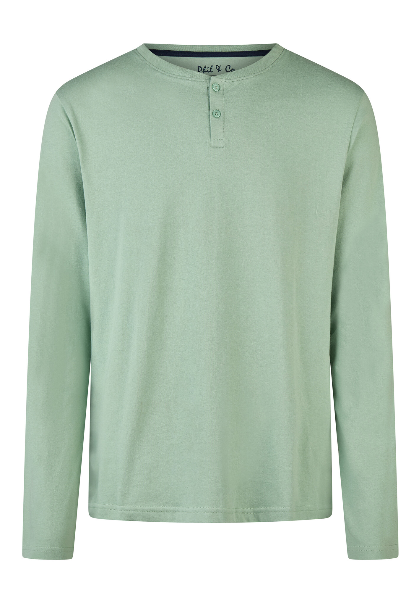 - De pyjamaset van Phil & Co bestaat uit een longsleeve T-shirt met knoopjes bij de hals
