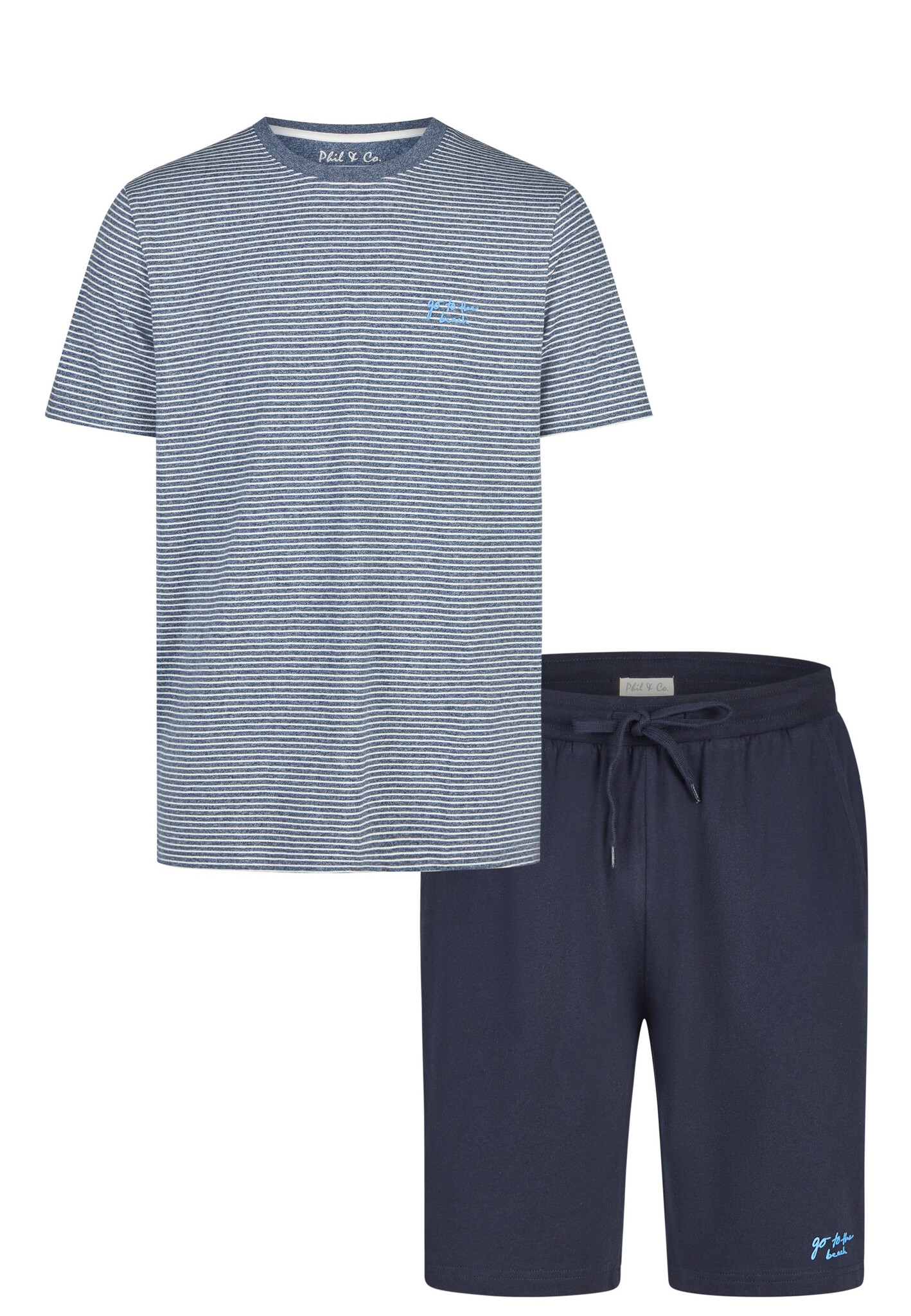 Phil & Co Heren Shortama Korte Pyjama Set Grijs/Donkerblauw Gestreept