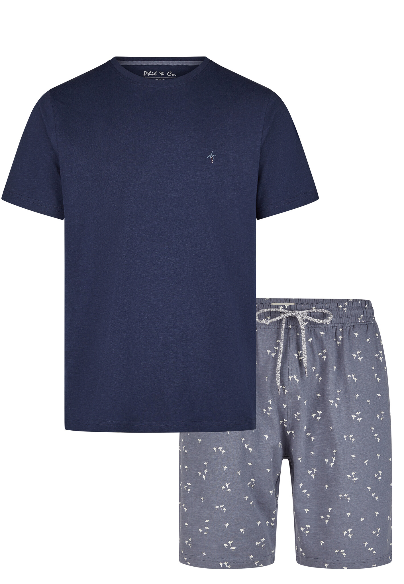 Phil & Co Heren Shortama Korte Pyjama Set Palm Donkerblauw