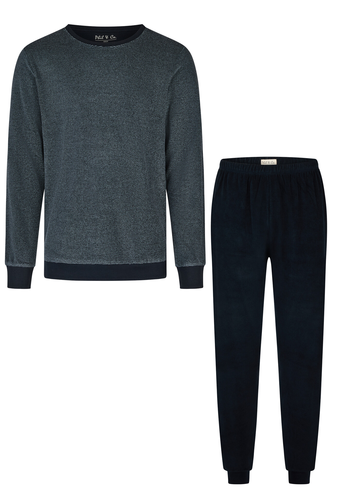 Phil & Co Heren Winter Pyjama Set Lang Badstof Blauw