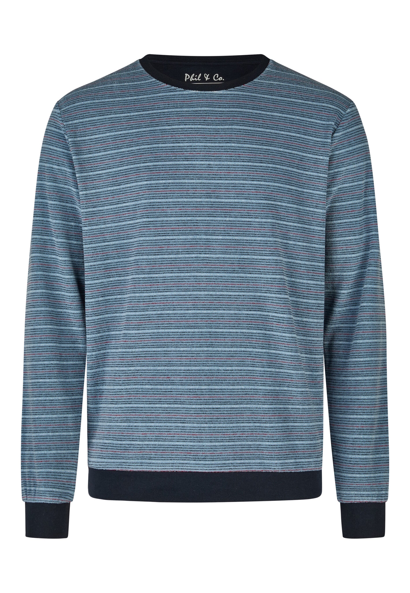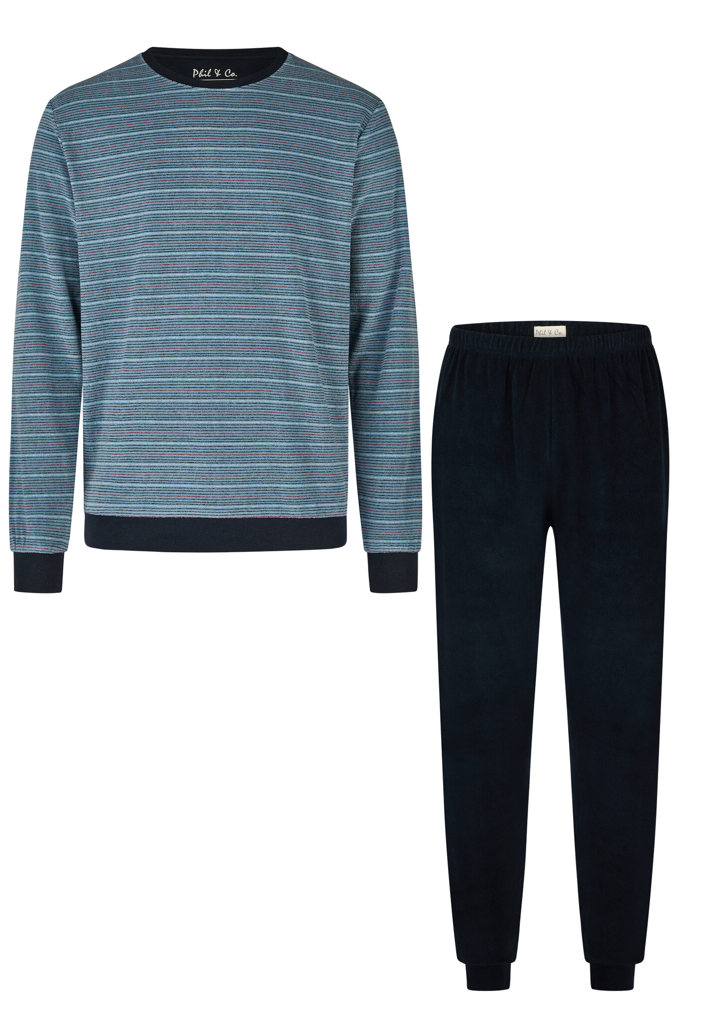 Phil & Co Heren Winter Pyjama Set Lang Badstof Lichtblauw/Donkerblauw Gestreept