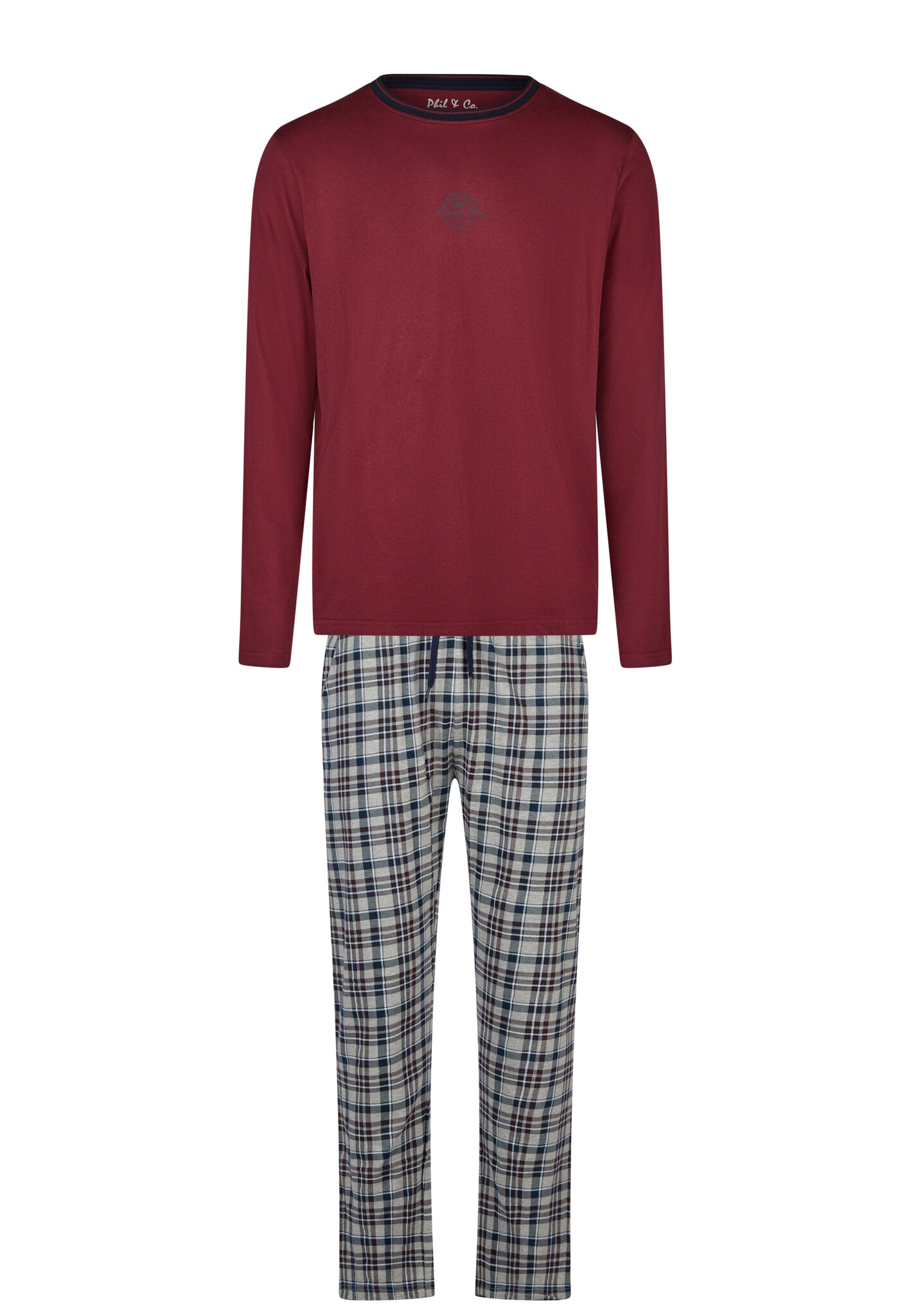 Phil & Co Heren Winter Pyjama Set Lang Rood/Grijs Geruit
