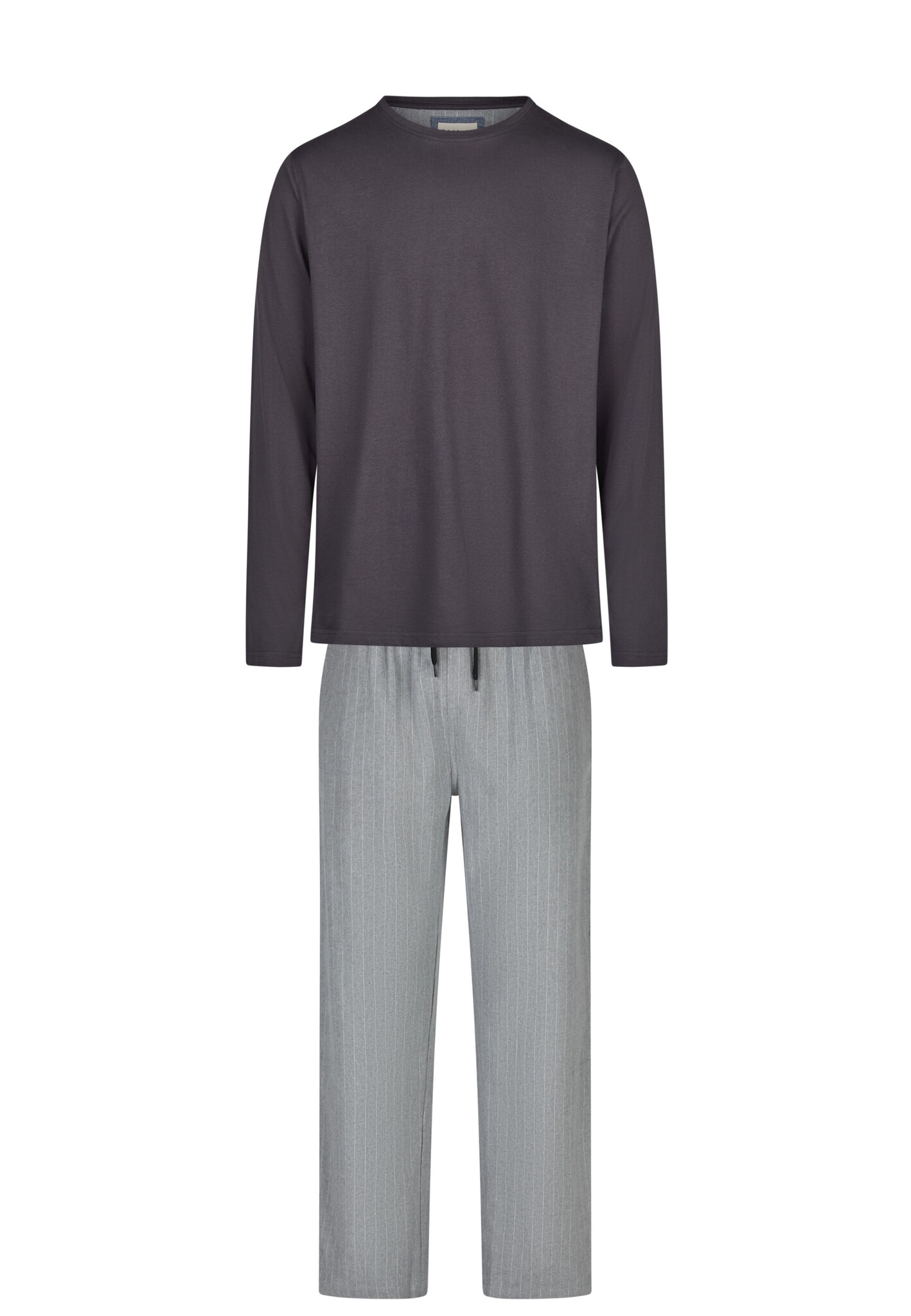 Phil & Co Lange Heren Pyjama Set Met Flanellen Pyjamabroek Grijs
