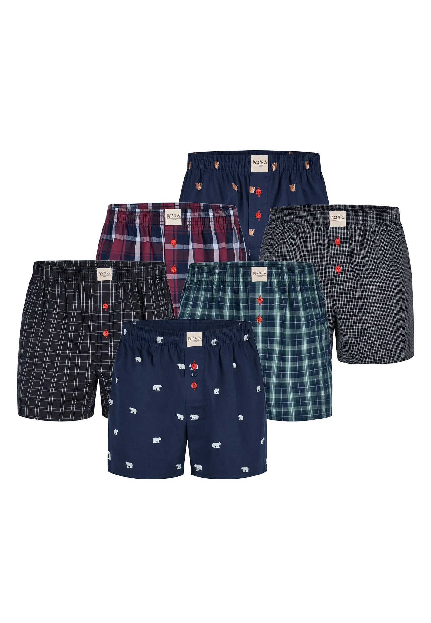 Phil & Co Wijde Boxershorts Heren Geweven Katoen Multipack 6-Pack D410