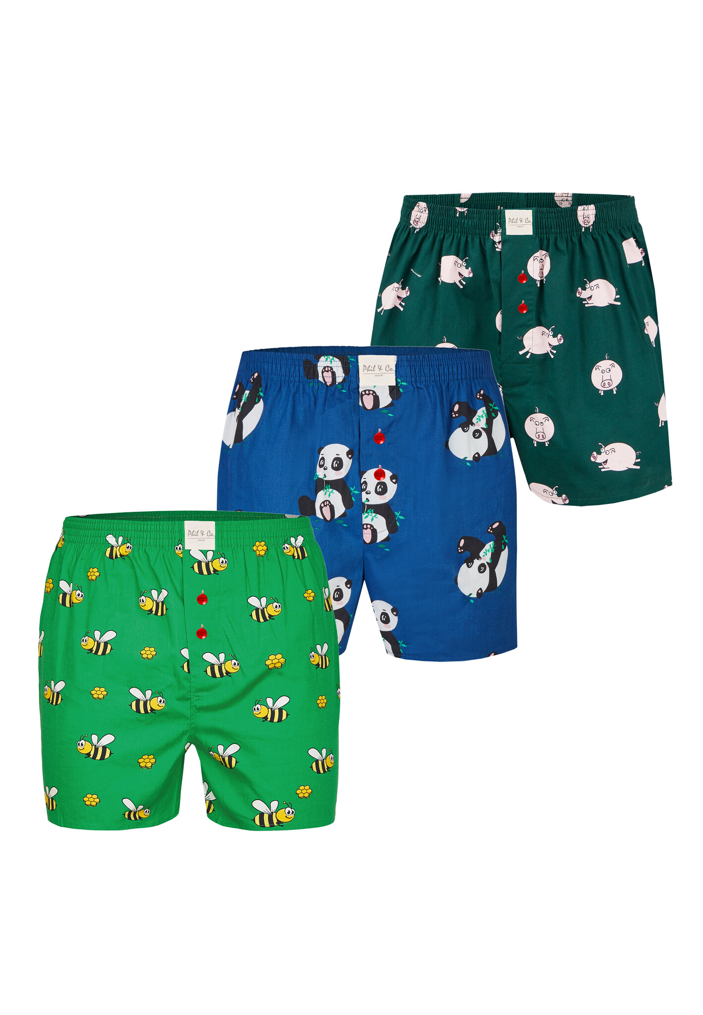 De wijde boxershorts van Phil & Co combineren luchtig comfort met een speels design. Deze 3-pack is gemaakt van 100% geweven katoen en voorzien van vrolijke prints, perfect voor wie houdt van ademend draagcomfort en een knipoog in zijn ondergoedlade.