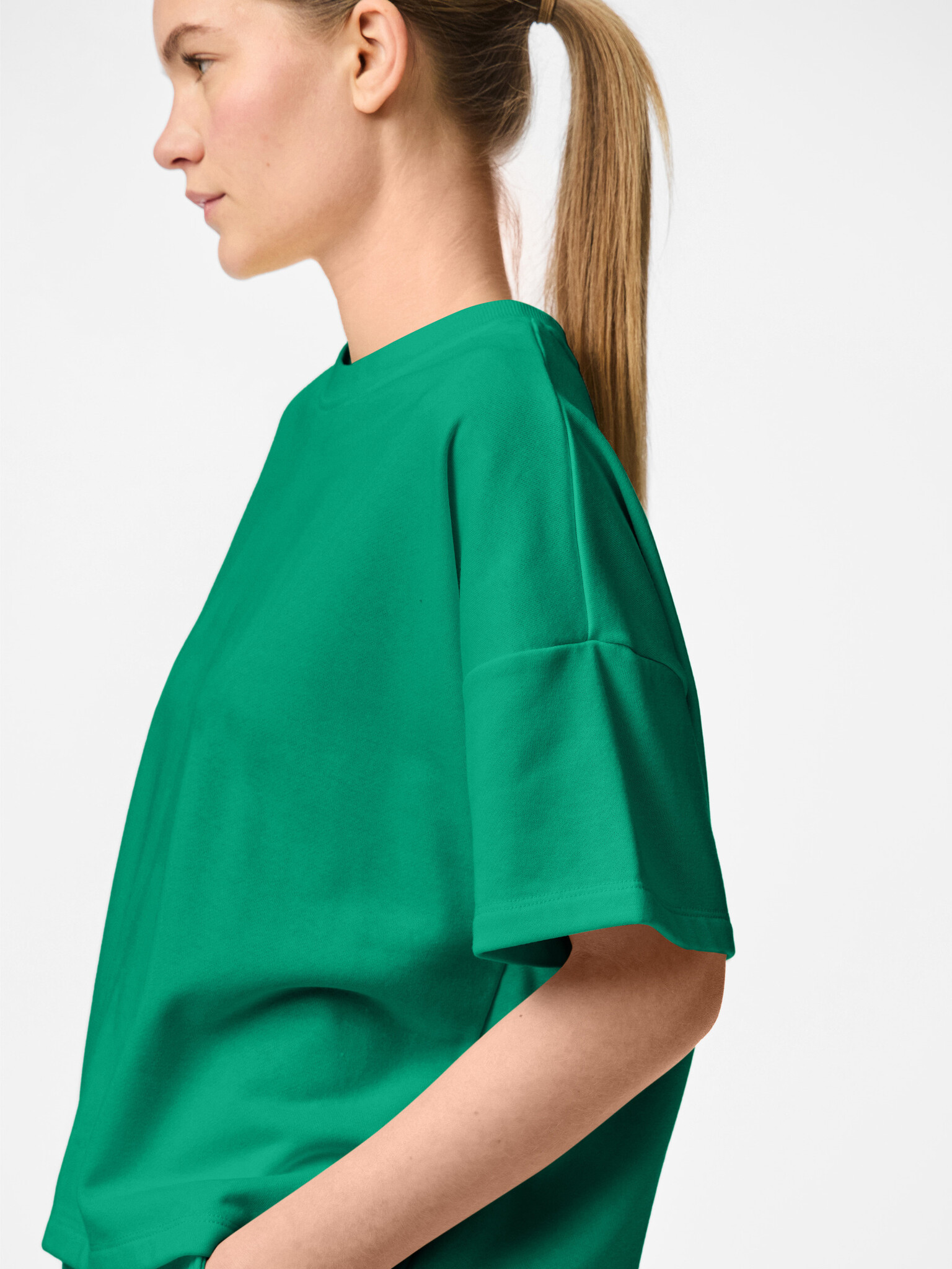 De sweatstof T-shirts van Pieces zijn een ideale keuze voor wie houdt van comfortabele en relaxte loungewear. Dit effen dames T-shirt heeft een ronde hals, een loose fit en is gemaakt van zachte jersey met een mix van katoen en gerecycled polyester. Perfect voor een casual dag thuis of een ontspannen look onderweg.