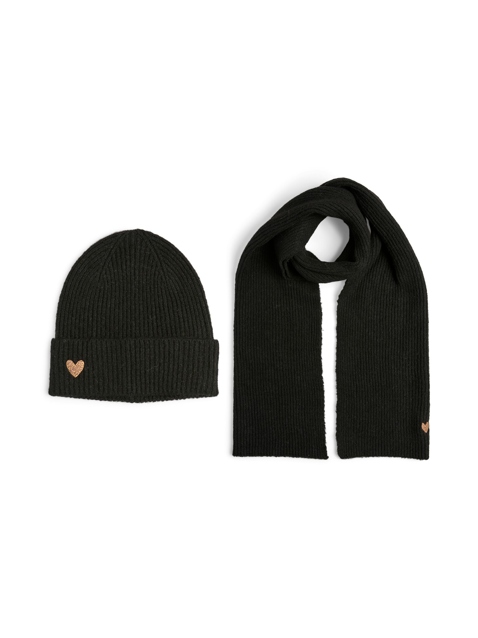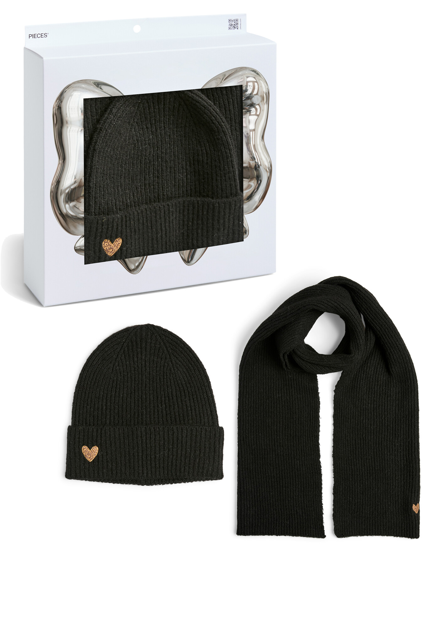 Pieces Dames Wintermuts + Sjaal Gebreid PCNIVA Giftbox Zwart