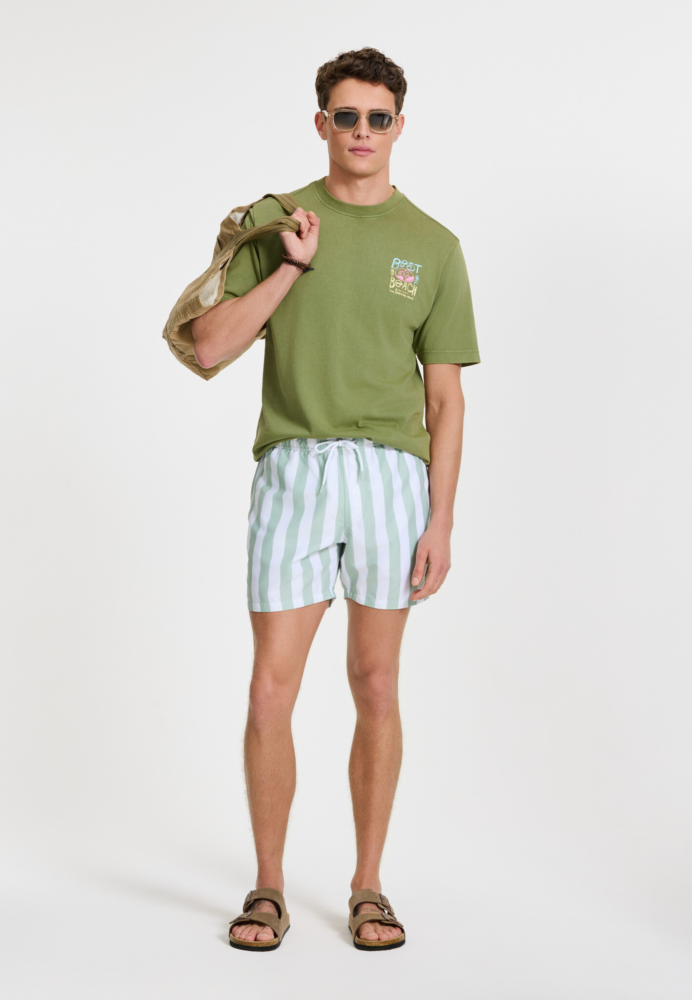 Shiwi Heren Zwemshort Broad Stripe Lichtgroen/Wit