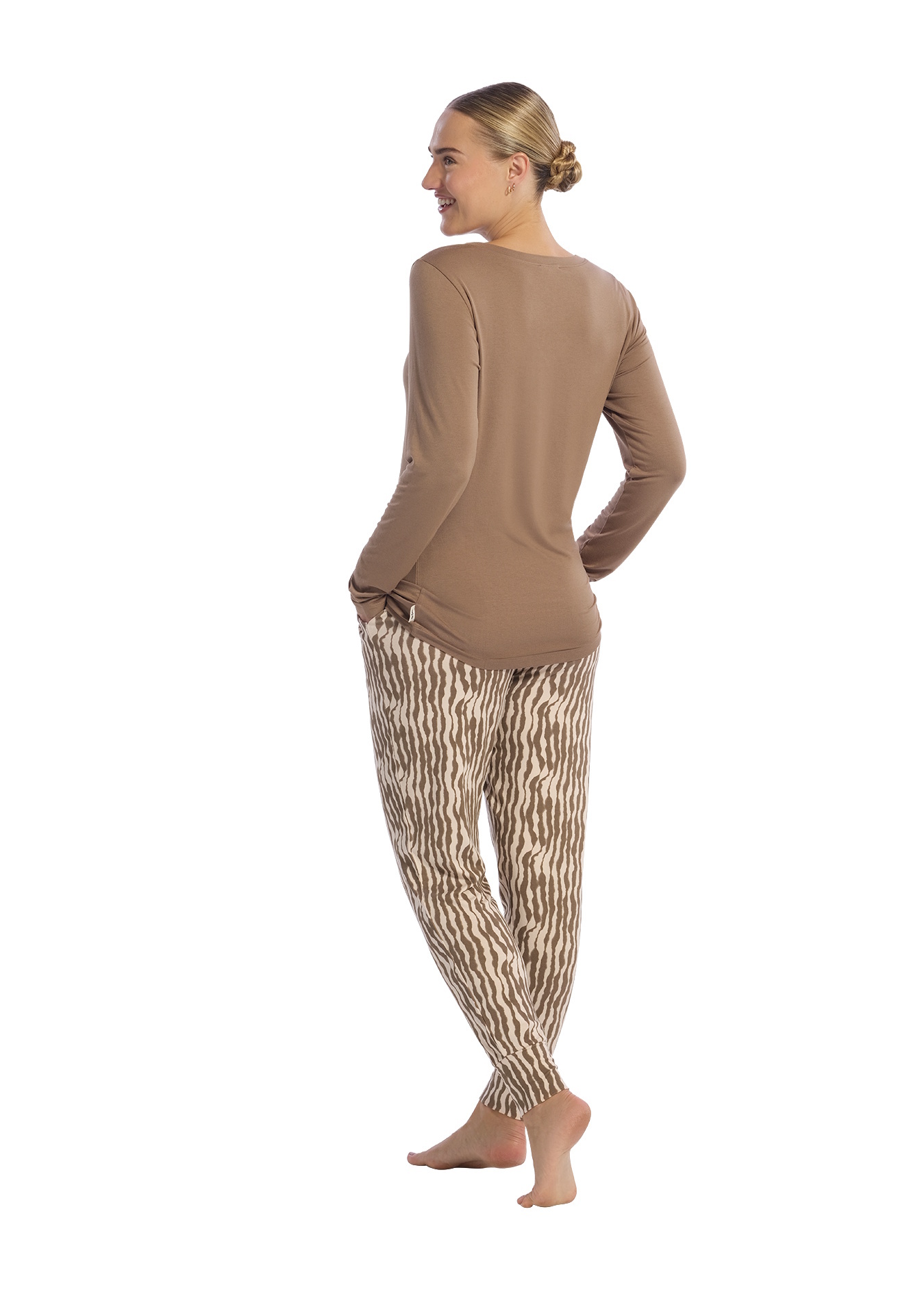 Ten Cate Dames Pyjama Set Lange Mouw Bruin Dierenprint