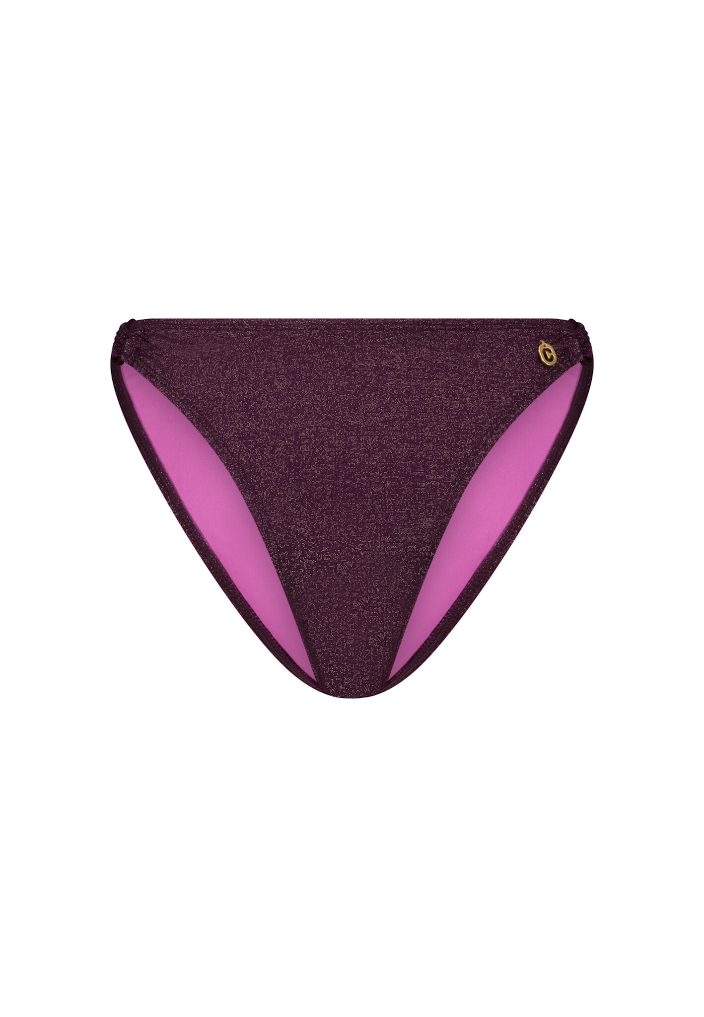 • Bijzondere kenmerken: de glitterafwerking in bordeauxrood, de roze binnenkant en het ringdetail aan de zijkant geven deze bikinislip een luxe en vrouwelijke uitstraling.