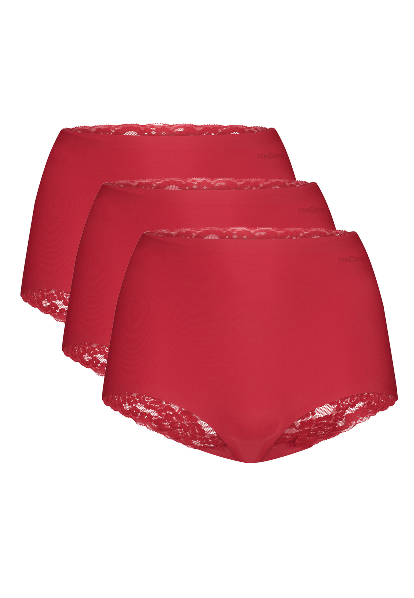 Ten Cate Dames Secrets Maxi Tailleslip High Waist Naadloos Kant 3-Pack Effen Rood