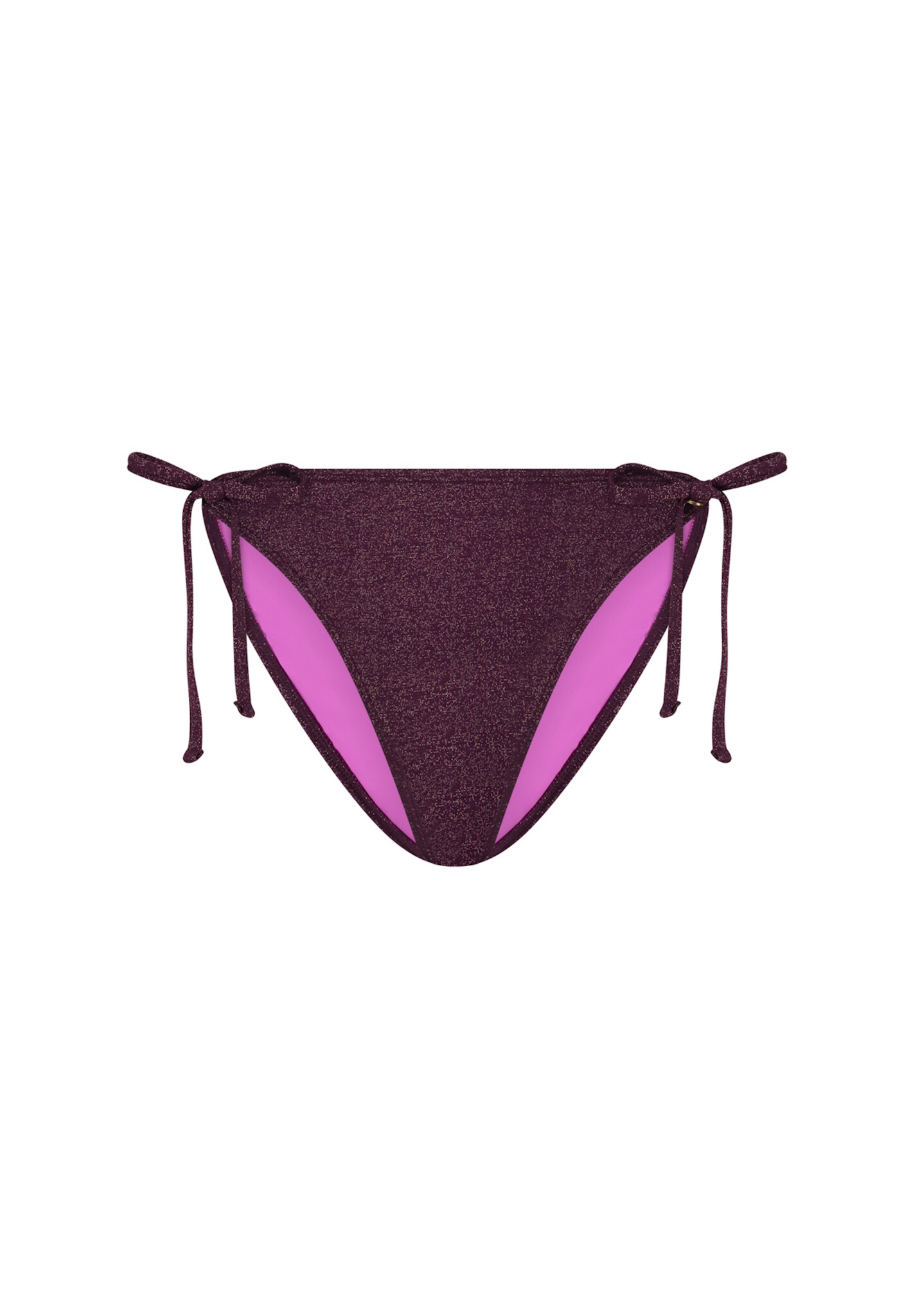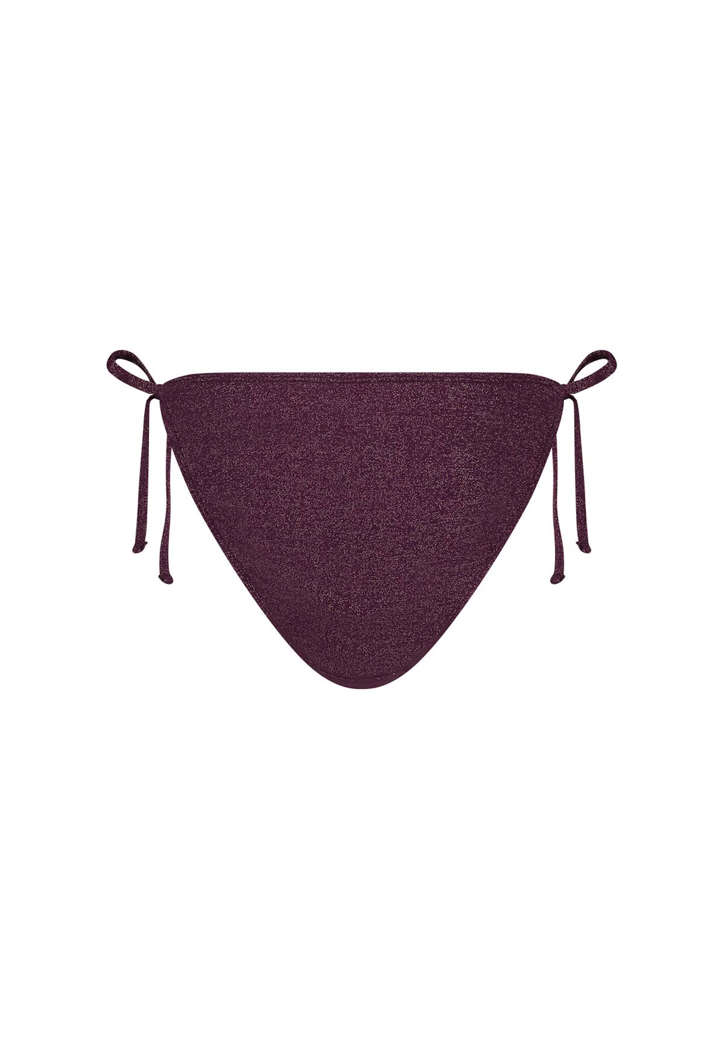 - Bijzondere kenmerken: de glitterafwerking in bordeauxrood en de verstelbare striksluiting geven deze bikinislip een stijlvolle en vrouwelijke uitstraling.