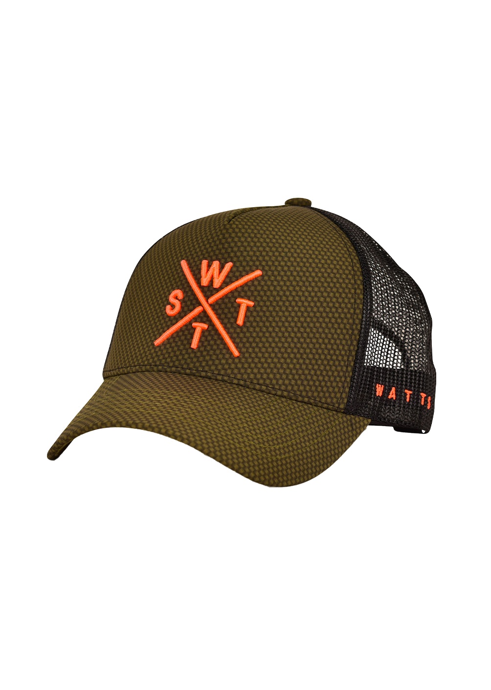 WATTS Unisex Cap TRIBE Logo Effen Carbon Kaki Groen/Neon Oranje